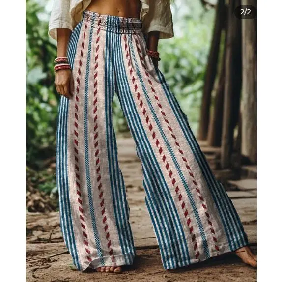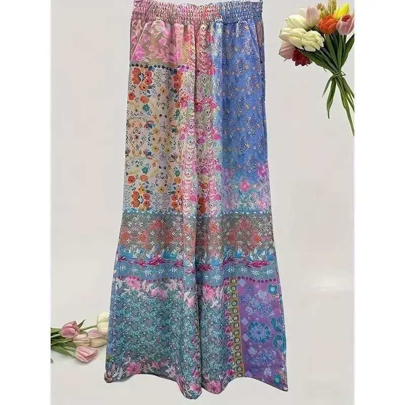 Women's Bohemian Floral Print Wide-Leg Pants - Elastic Waist Loose Fit Long Pants with Pockets, Vibrant Multicolor Floral Design for Spring Summer Fall Casual Outings & Beach Vacations, Summer Clothing, Patterned Textile, Outdoor Leisure, Print Trousers,