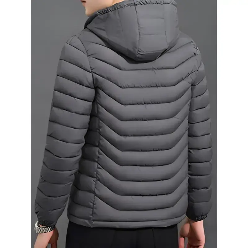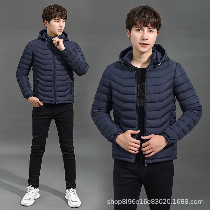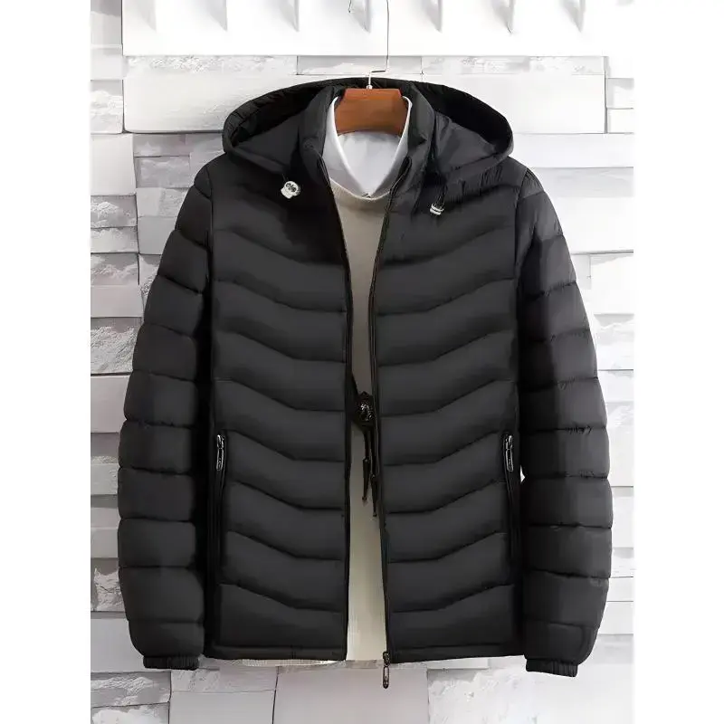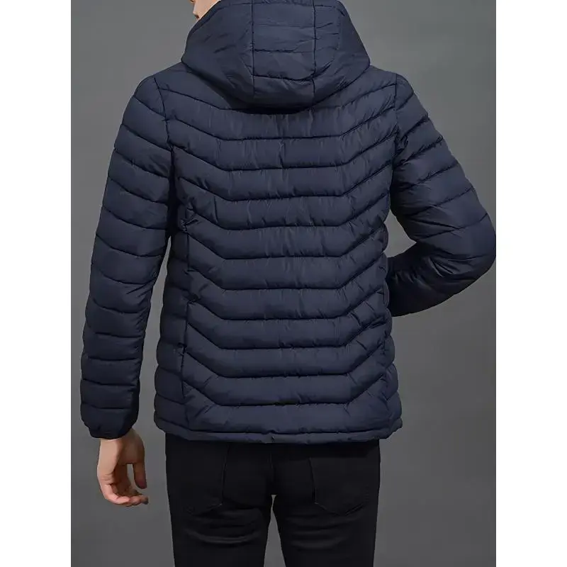 Fashion men's wear�� Men's Elegant Hooded Winter Coat - Full-Zip Insulated Jacket with Removable Hood, Padded Windproof Windbreaker, Polyester Insulation & Zippered Pockets, Navy Blue Casual Outerwear for Cold Weather (Hand Wash/Dry Clean)