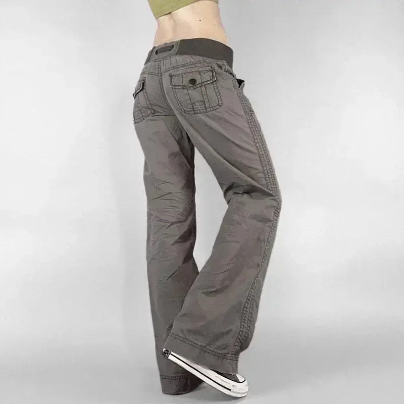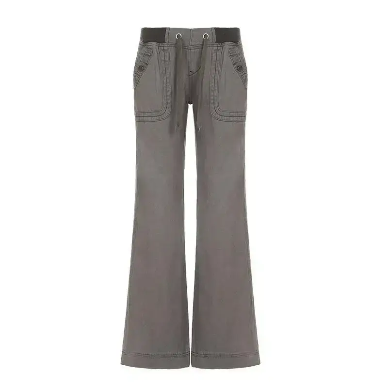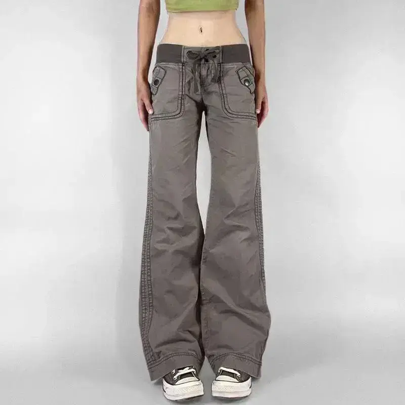Retro Lace-up Low Rise Pants Streetwear Patchwork Loose Casual for Women Harajuku Straight Trousers Korean Fashion