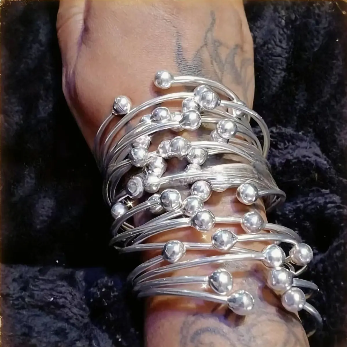 5pcs/10pcs Retro Boho Thick Bangles,Ball Silvery Bangles Bracelet, Boho Stacking Bangles, Handmade Silvery Bangles for Women Daily Party Jewelry Gifts silver