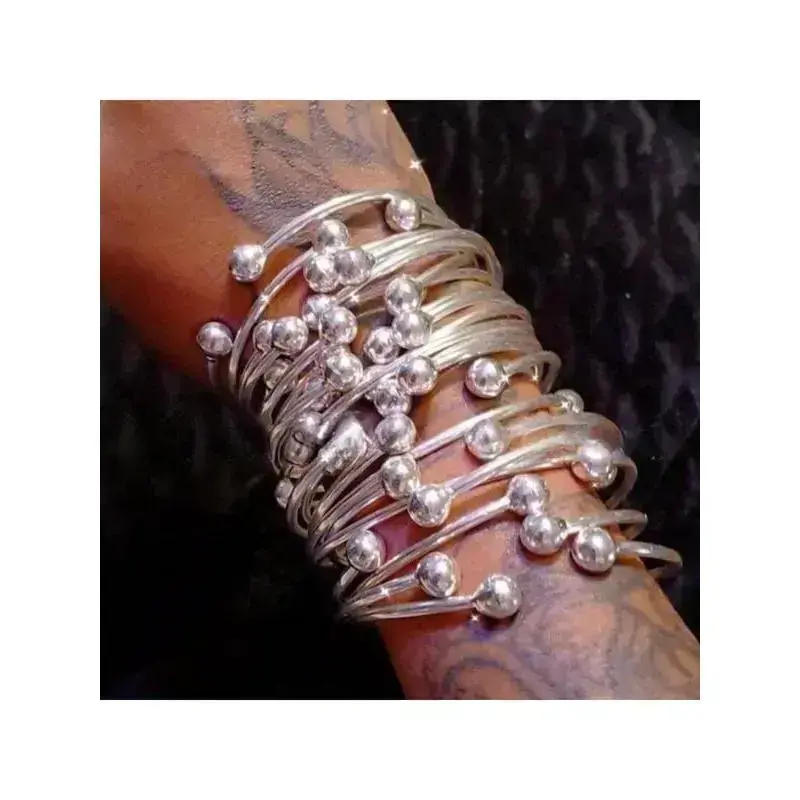 [Boho Aesthetic]: These thick bangles boast a retro boho charm that sets them apart from standard bangles, for personal expression./[Reliable Craftsmanship]: Handmade with care, these silvery bangles ensure durability, providing long-lasting adornment for your everyday outfits./[Stackable]: Designed for easy stacking, these bangles allow for endless creativity in personal styling, enhancing any collection./[Size Options]: Available in sets of 5 or 10 pieces, these bangles cater to different preferences, making them for gifting./[All-season Wear]: Suitable for all seasons, these bangles complement various outfits, ensuring you're always ready for any occasion.