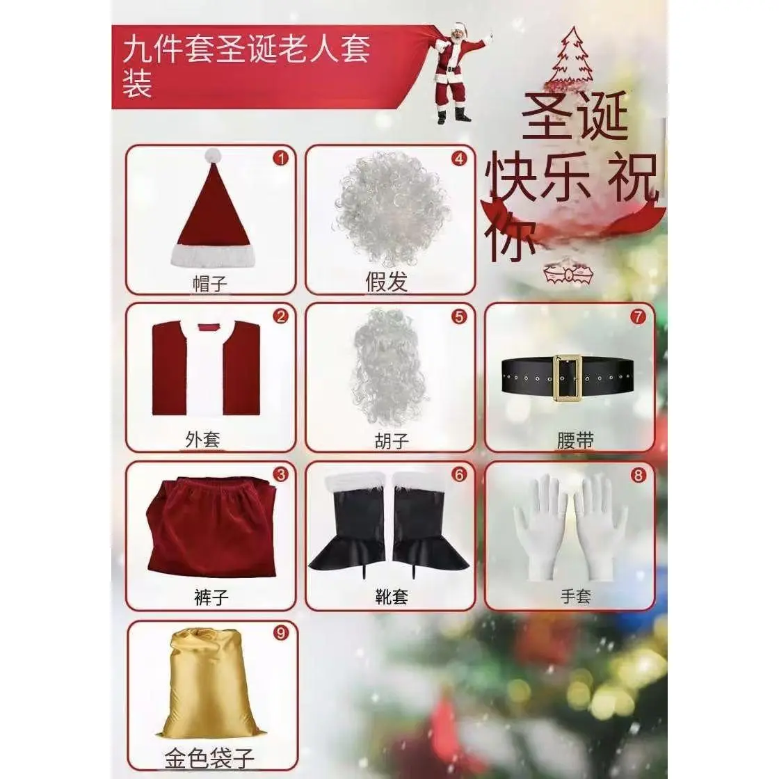 SantaClausGoldVelvetSetChristmasWarmClothingMen'sChristmasClothingAdultCharacterCosplayCostume