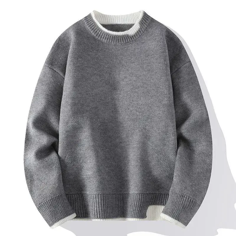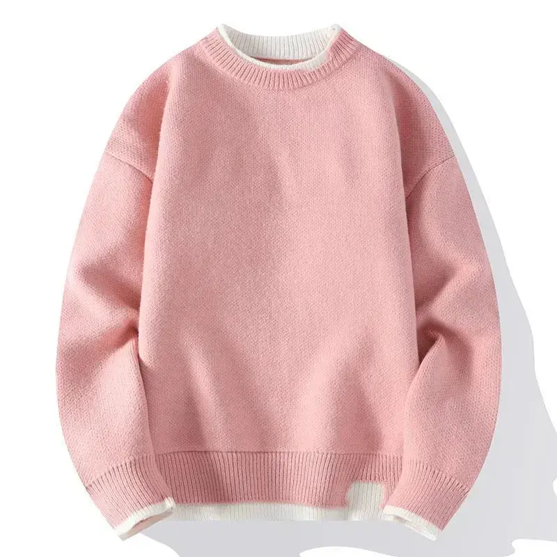 Fall Winter Men Knitwear Fake Two-Piece Cashmere Fashion Casual Sweater
