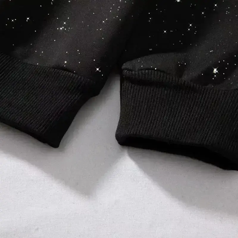 Autumn Winter Starry Sky Hooded Sweatshirt Men Women Sequin Top Cool Round Neck Sparkly Hoodie Dress Menswear Casual Long Sleeve White