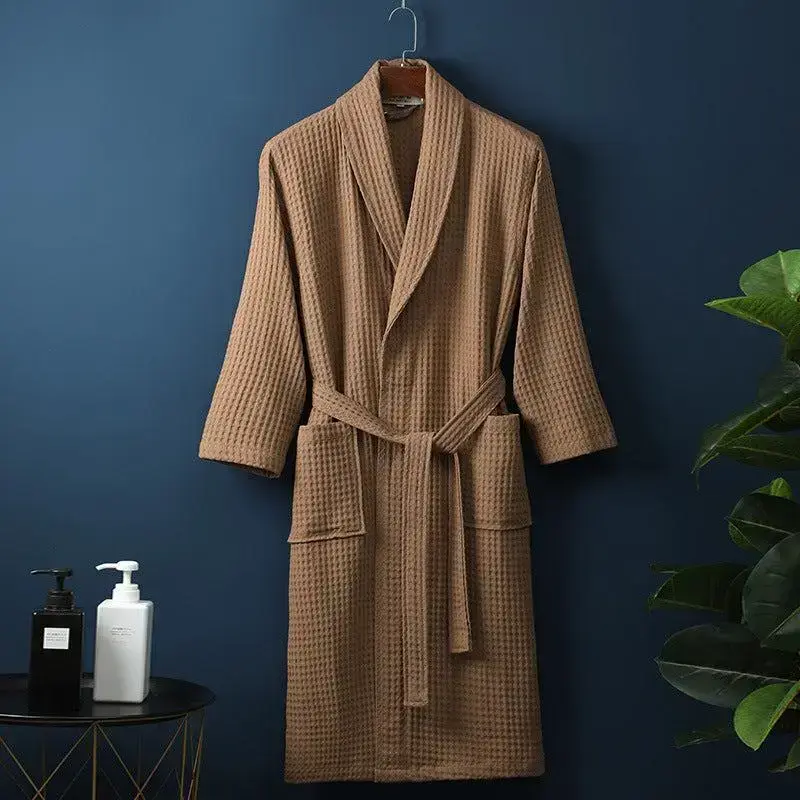 Pure Cotton Bathrobe Long Waffle All Cotton Nightgown