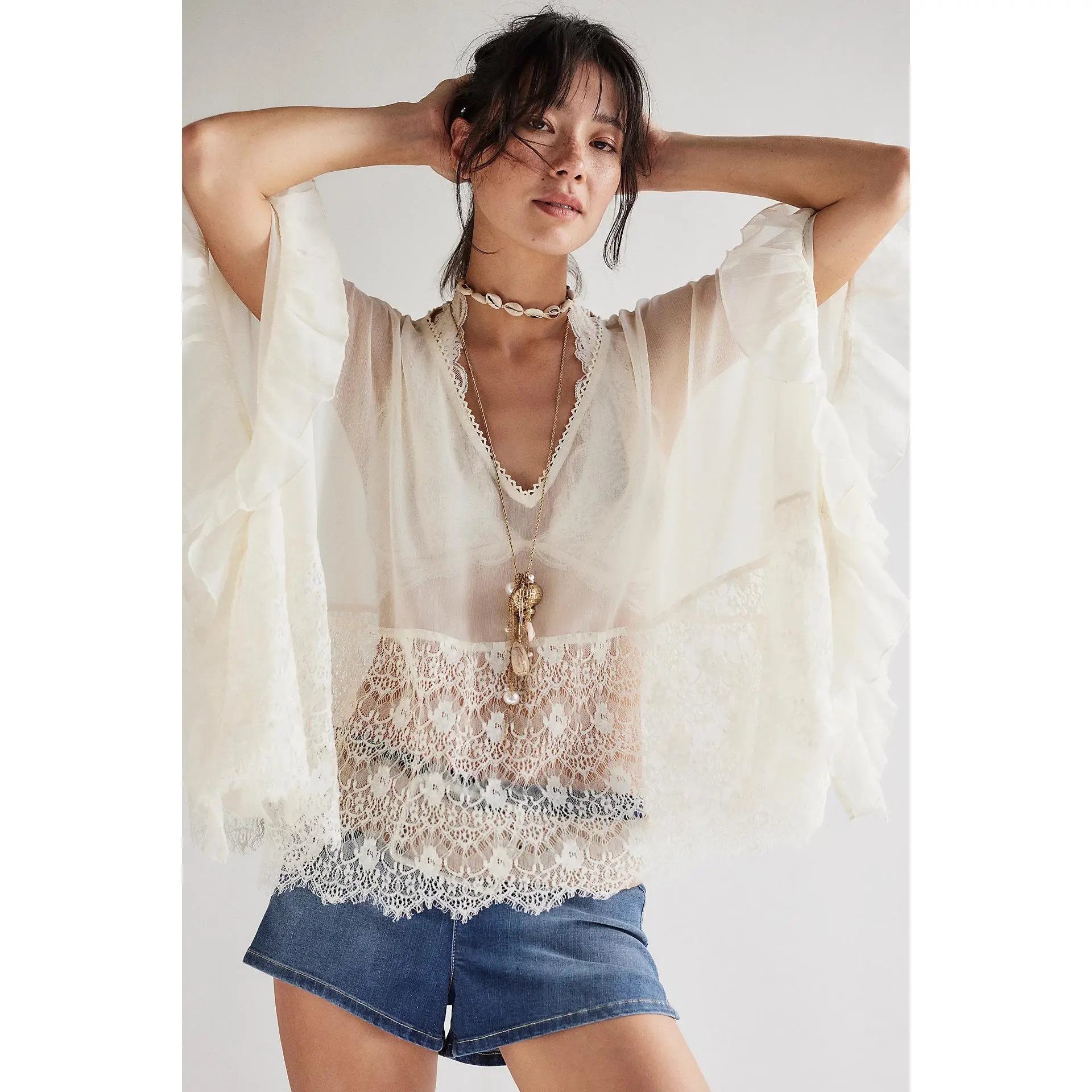 Dokotoo Women's Summer Business Casual Blouses V Neck Short Sleeve Shirts Hollow Out Cute Lace Tops Loose Fit Breathable Fabric
