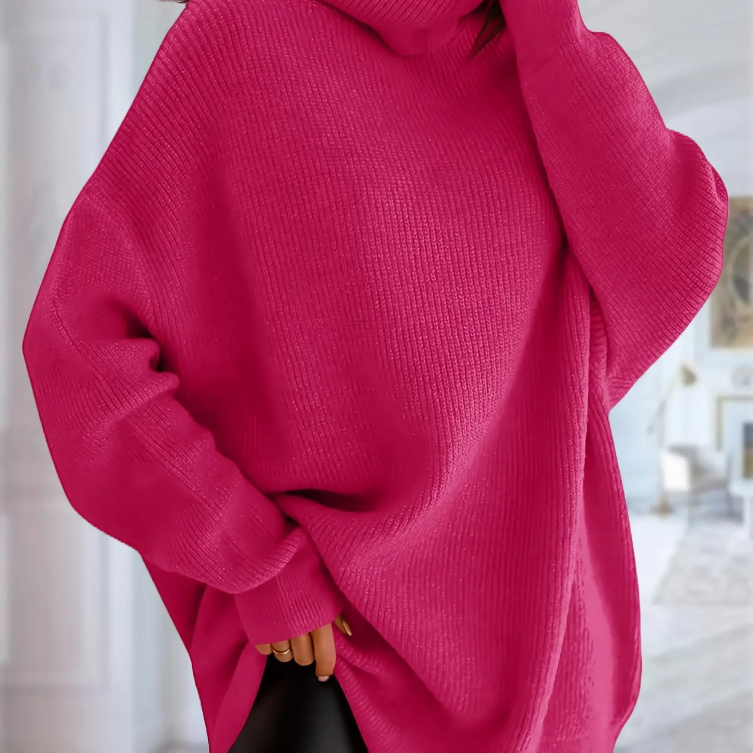 Womens Turtleneck Oversized Sweater Batwing Chunky Pullover Sweater Casual Fall Loose