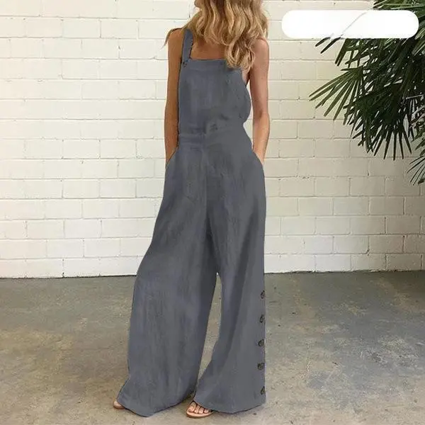 Baggy Hippie Overalls 2025 New Women's Sleeveless Side Pocket Casual Wide Leg Side Buckle Jumpsuit Chic Comfortable