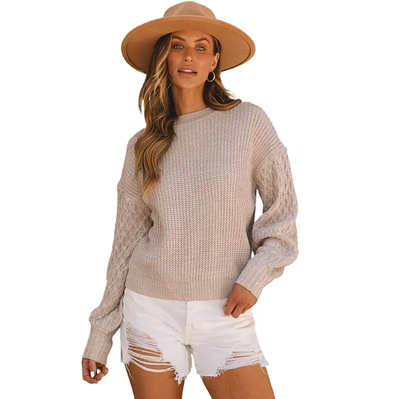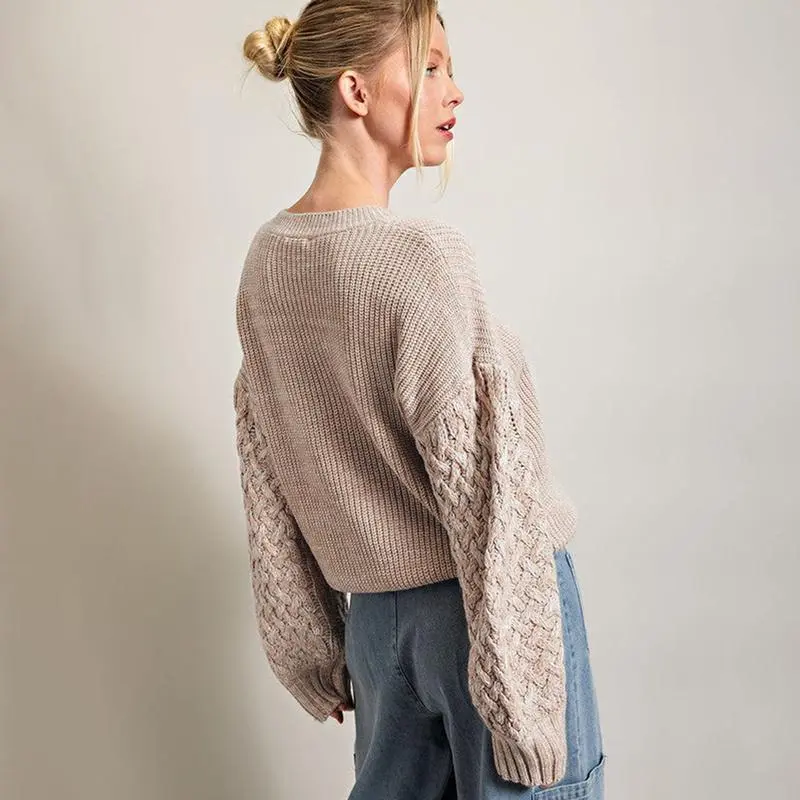 Womens Parchment Cable Knit Pullover Sweater with Drop Shoulder and Crew Neck - Womenswear, Knitwear Casual Fashion Winteroutfit