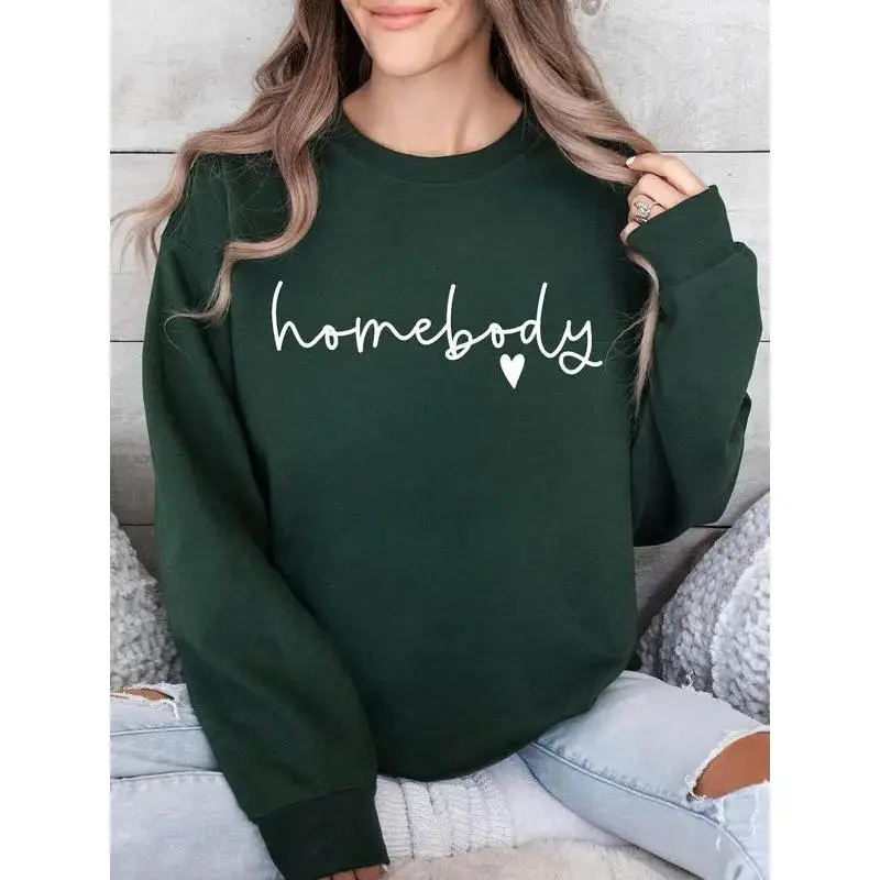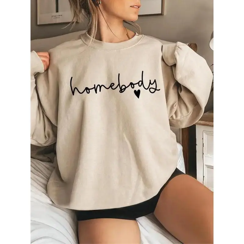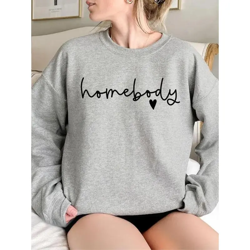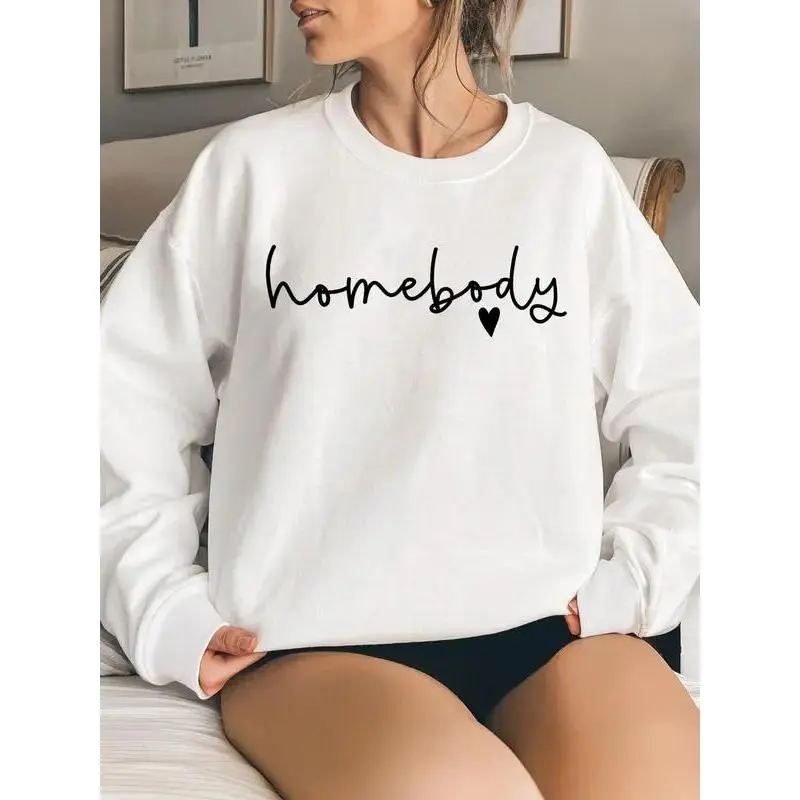 (Sale Off Up To 50%) Homebody Sweatshirt, Women's Letter & Heart Print Drop Shoulder Sweatshirt, Casual Long Sleeve Round Neck Pullover for Daily Wear, Ladies Clothes for All Seasons