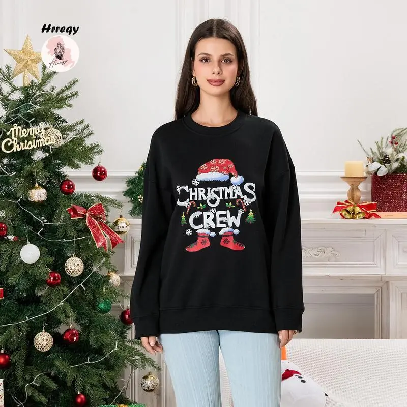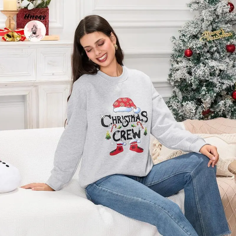 Women's Christmas Sweatshirt Long Sleeve Crewneck Letter Santa Hat Print Pullover w dw fall sweater Women's Long