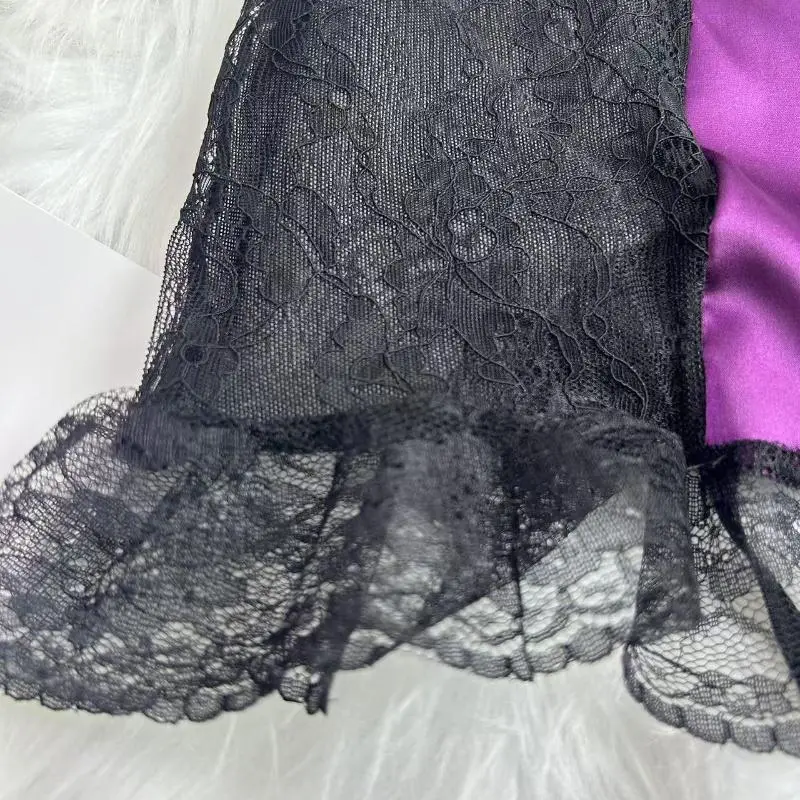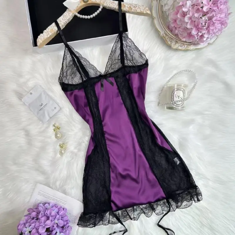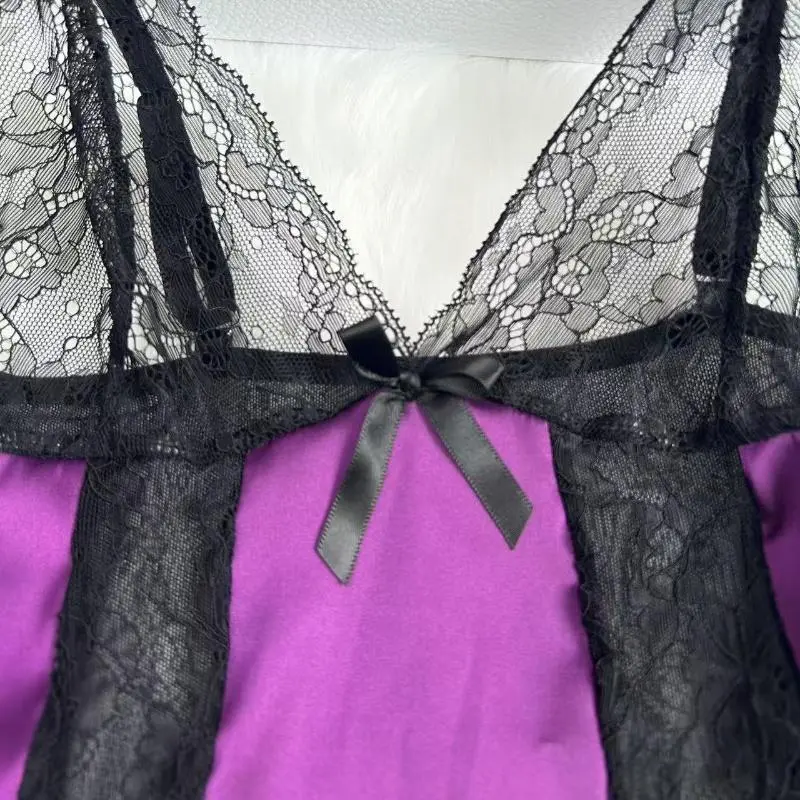 Satin & Lace Trimmed Chemise Nightgown Sexy Spaghetti Strap Slip Dress,V-Neck Sleepwear for Women Loungewear Womenswear Fit Comfort