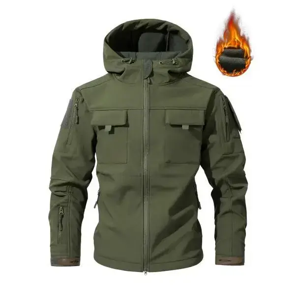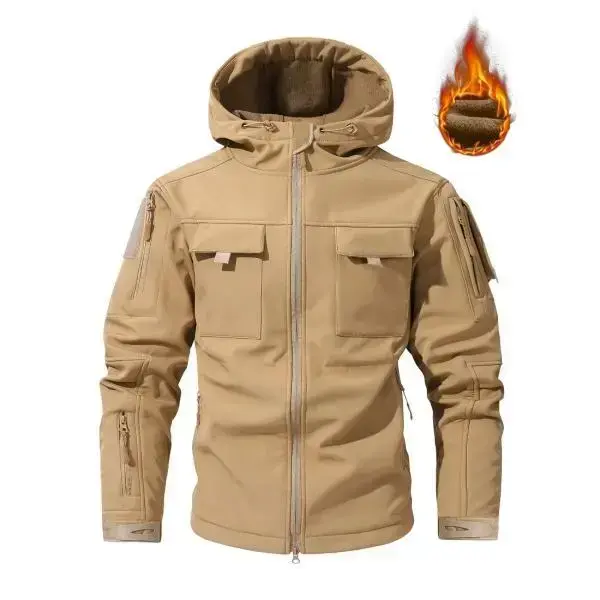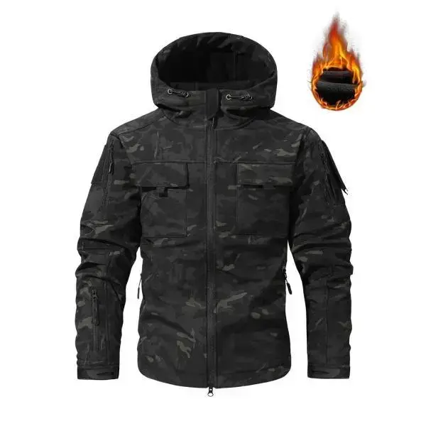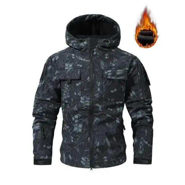 Men's Autumn & Winter Fleece Lined Thick Hooded Camo Jacket with Zip Front Closure Windproof Water Resistant Softshell Fabric for Running Hiking Cycling & Everyday Casual Wear