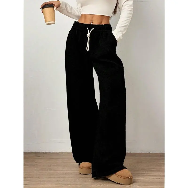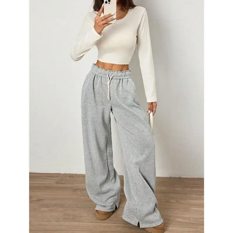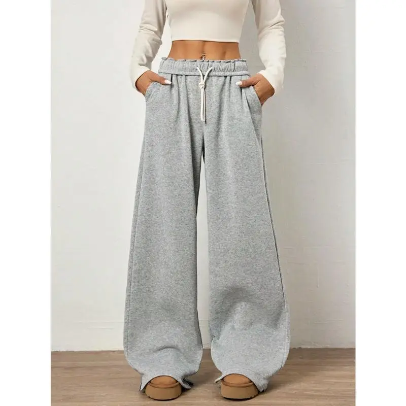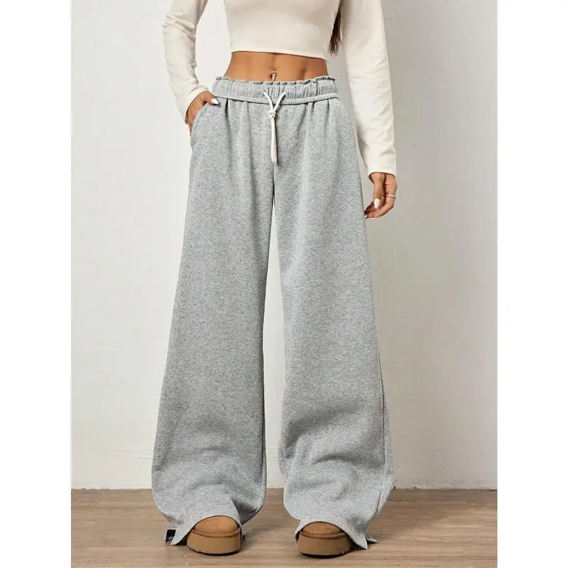 Details:Drawstring/Pockets:No/Closure Type:Drawstring Waist/Lined For Added Warmth:No/Pattern Type:Plain/Body:Unlined/Color:Grey/Type:Straight Leg/Waist Line:Natural(Mid Waist)/Length:Extra Long/Fit Type:Loose/Temperature:Late Fall (10-17℃/50-63℉)/Fabric:Non-Stretch/Material:Knitted Fabric/Composition:100% Polyester/Care Instructions:Machine wash, do not dry clean/Sheer:No