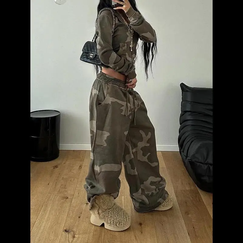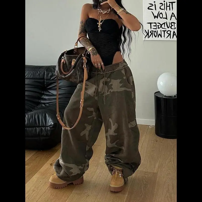 Women's Camo Print Drawstring Waist Jogger Pants, Casual Pocket Trousers for Daily Wear, Ladies Bottoms for All Seasons