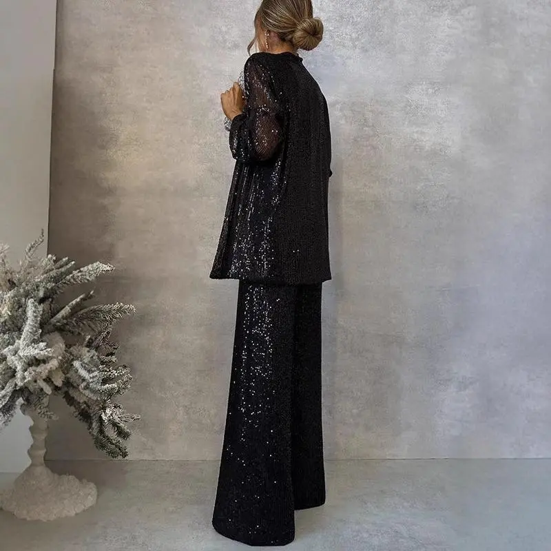 2025 Three color sequined jacket and high waisted casual pants two-piece set for women's clothing