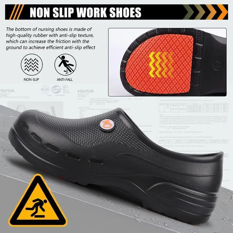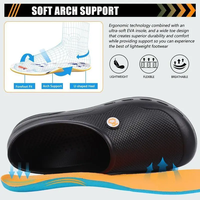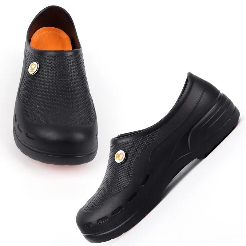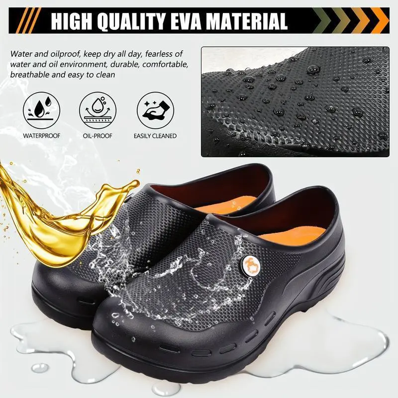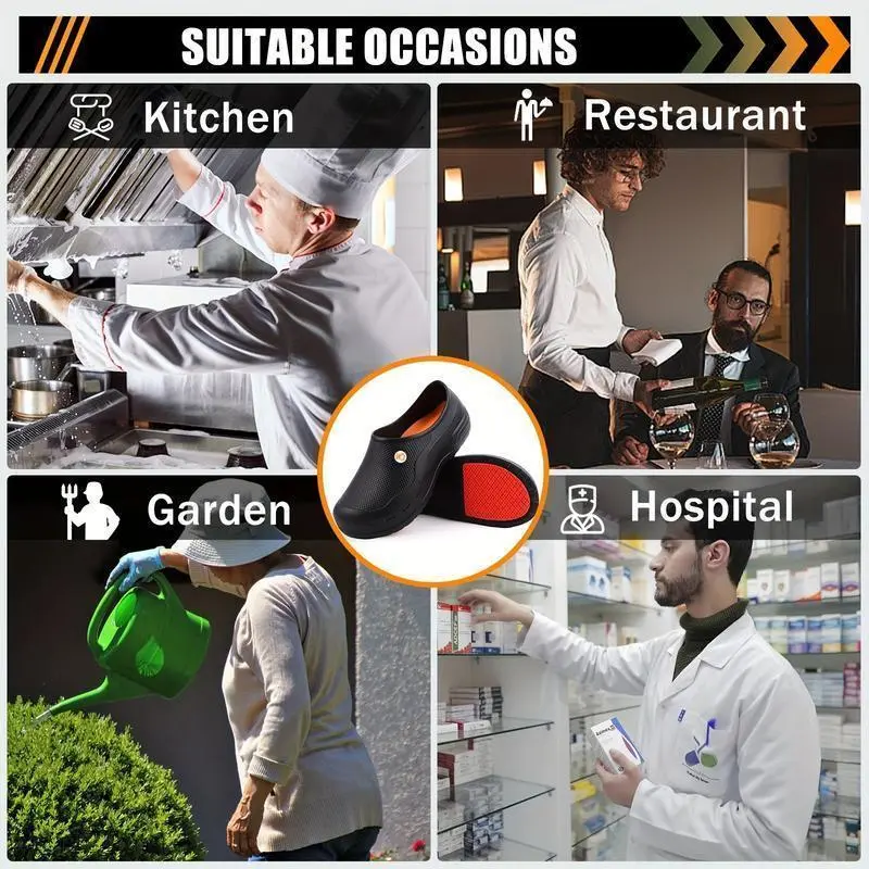Unisex Chef Shoes - Non-Slip High Quality Lightweight EVA Clogs for Men & Women, All-Day Comfort Slip-On Work Shoes for Kitchen, Hospital, Restaurant, Outdoor & Casual Use, Non Slip Shoes, Hospital Floor Staff Footwear, Boy Bridal Black Orange