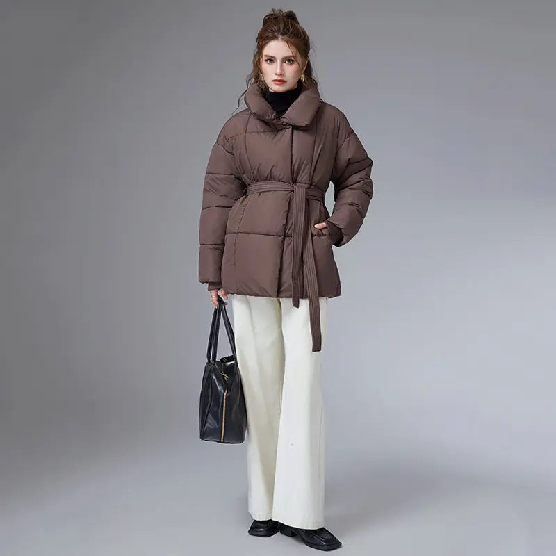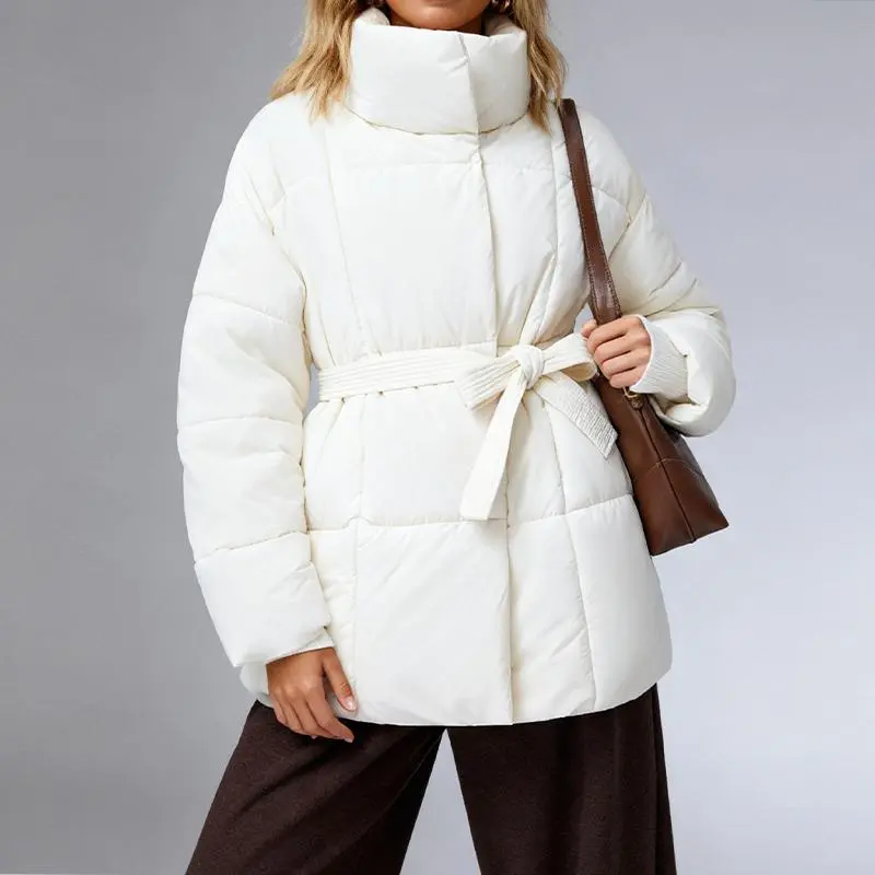Belted Puffer Jacket | Trendy Cinched-Waist Winter Coat | Warm Stylish Essential in Multiple Colors 914 Ultra-Warm Puffer Construction ✨ The plush, padded design locks in heat, keeping you toasty on freezing days. No need to sacrifice style for warmth! This jacket is your new cold-weather go-to, offering coziness and chicness in one. Flattering Cropped Length 📏 This short cut elongates your legs, making it perfect for high-waisted jeans, pants, or skirts. The versatile design ensures it pairs well with various outfits, enhancing your look effortlessly. Versatile Design Details 🌟 Features a stand collar and double closure (zipper + buttons) for extra warmth and a polished look. The timeless color palette includes White, Khaki, Black, Brown, or Gray, making it a versatile staple for your winter wardrobe. Casual Everyday Vibe 👖 Pair the White puffer with mom jeans and sneakers for an effortlessly cool look. Ideal for coffee runs or grocery shopping, this jacket keeps you warm and stylish. Polished Office Look 👔 Rock the Khaki version with tailored trousers and ankle boots. Professional enough for meetings and cozy enough for the commute, this jacket is perfect for any office setting. Chic Date Night Outfit 👗 Throw the Black jacket over a midi skirt and heels for a stylish and warm date night outfit. This jacket is a winter must-have for anyone who wants to stay warm and on-trend. 💖 Grab your favorite color now and conquer winter in style! This jacket is a versatile staple for your winter wardrobe. Shop today!