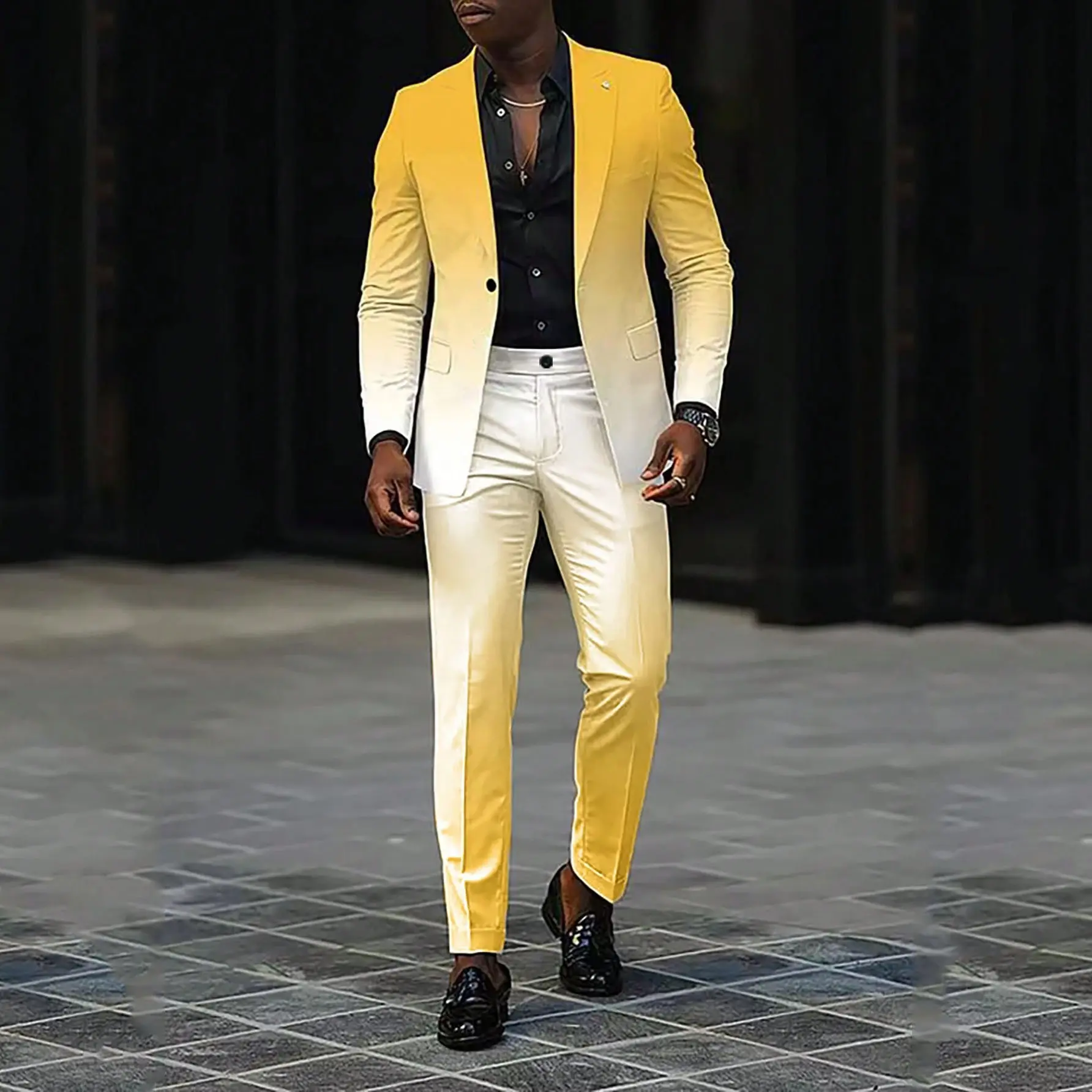 Men's Business Solid Color Contrast Trim Lapel Blazer & Pants Two-Piece Set, Slim Fit Formal Suit Set for Wedding Party, Men's Clothing for All Seasons, Menswear