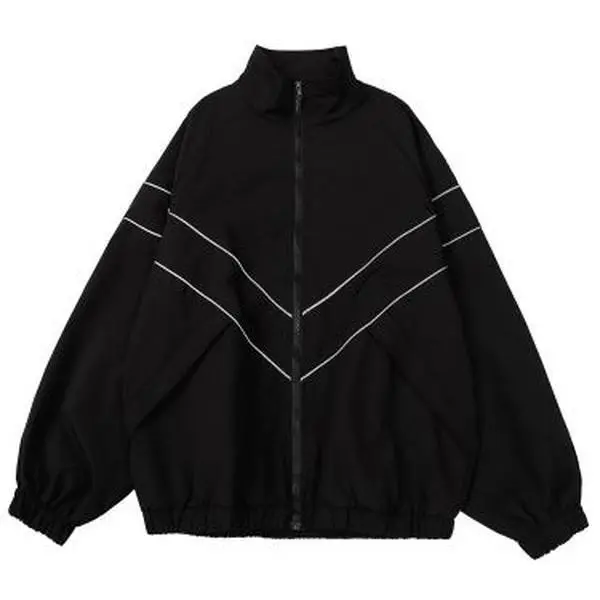 Reflective Striped Jacket Windbreaker Coat 2024 Men Hip Hop Streetwear Zipper Up Harajuku Thin Coats Sports Black Blue