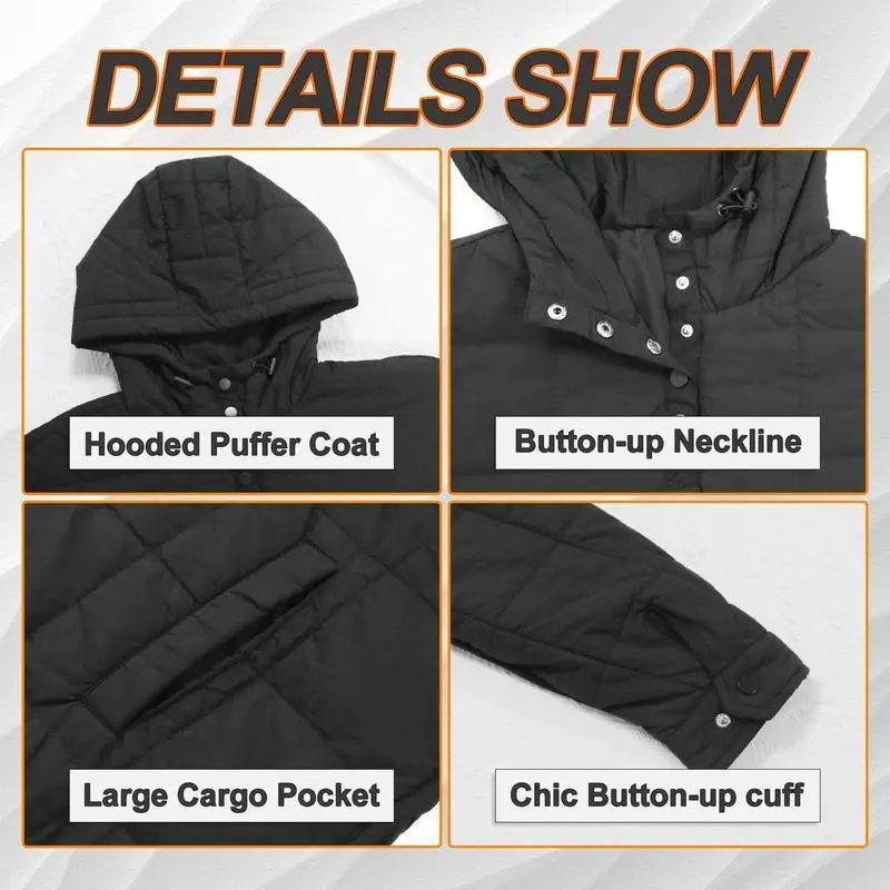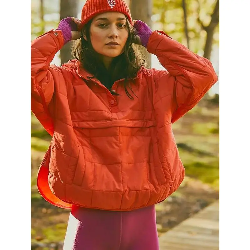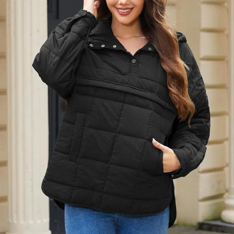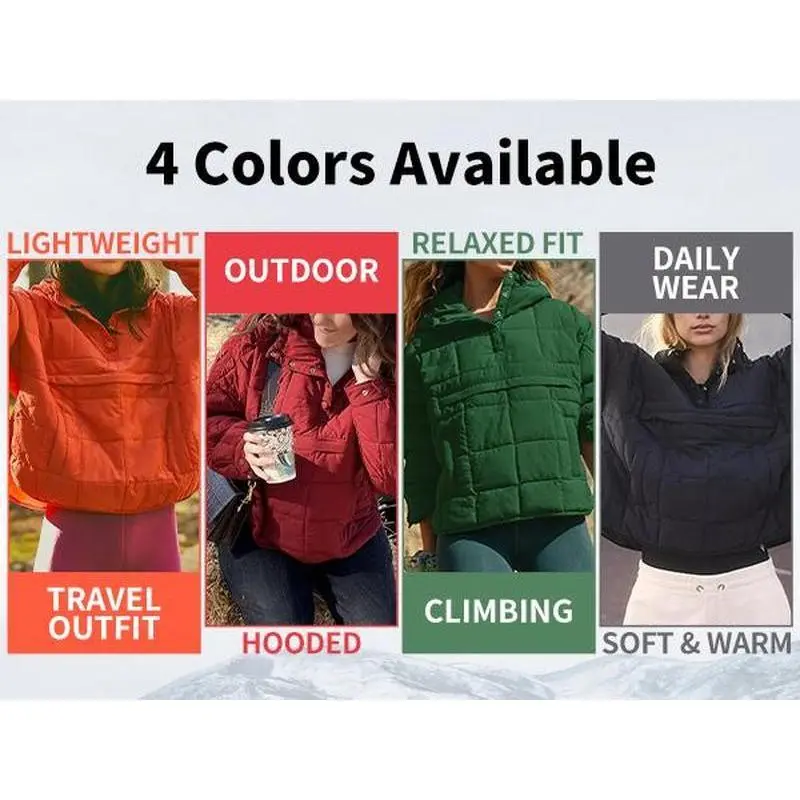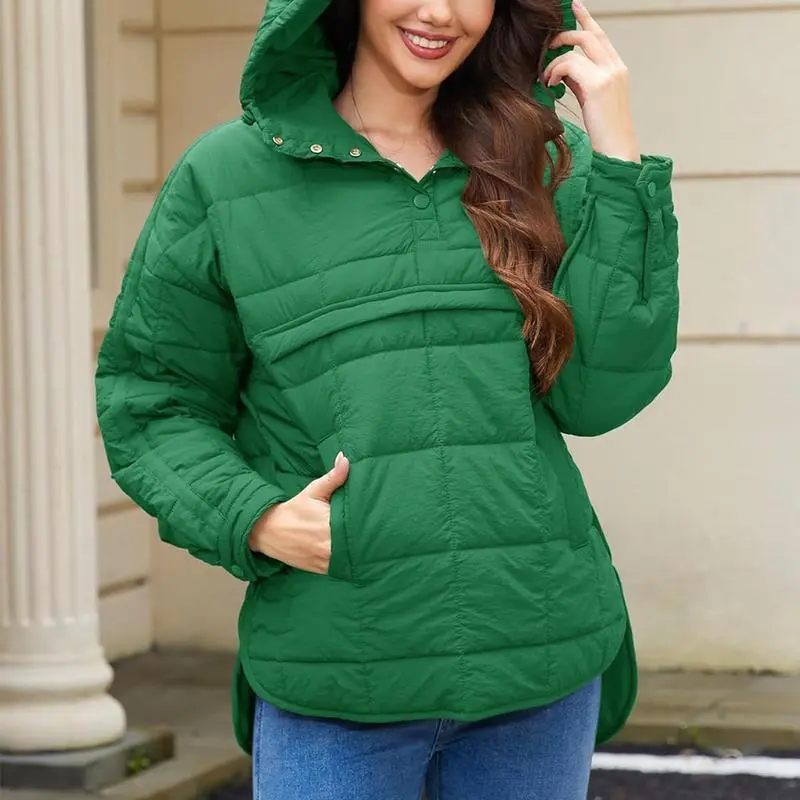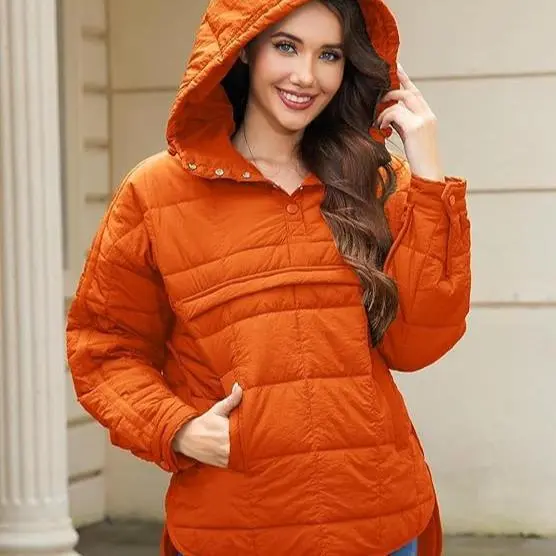 Women's Oversized Pullover Puffer Jacket Long Sleeve Hooded Lightweight Warm Quilted Hoodies Coat Tops Casual Womenswear