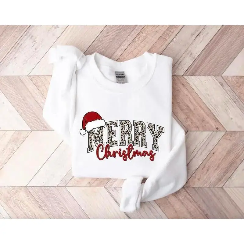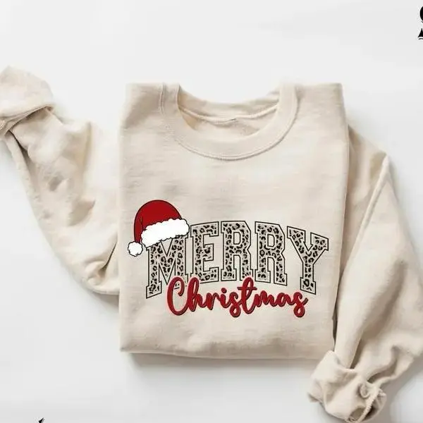 Merry Christmas Cute Winter Sweatshirt, Retro Holiday Cotton Crewneck for Women, Vintage Xmas Graphic Sweatshirt, Cozy Unisex Gift for Her, Classic Christmas Top for Seasonal Outfits