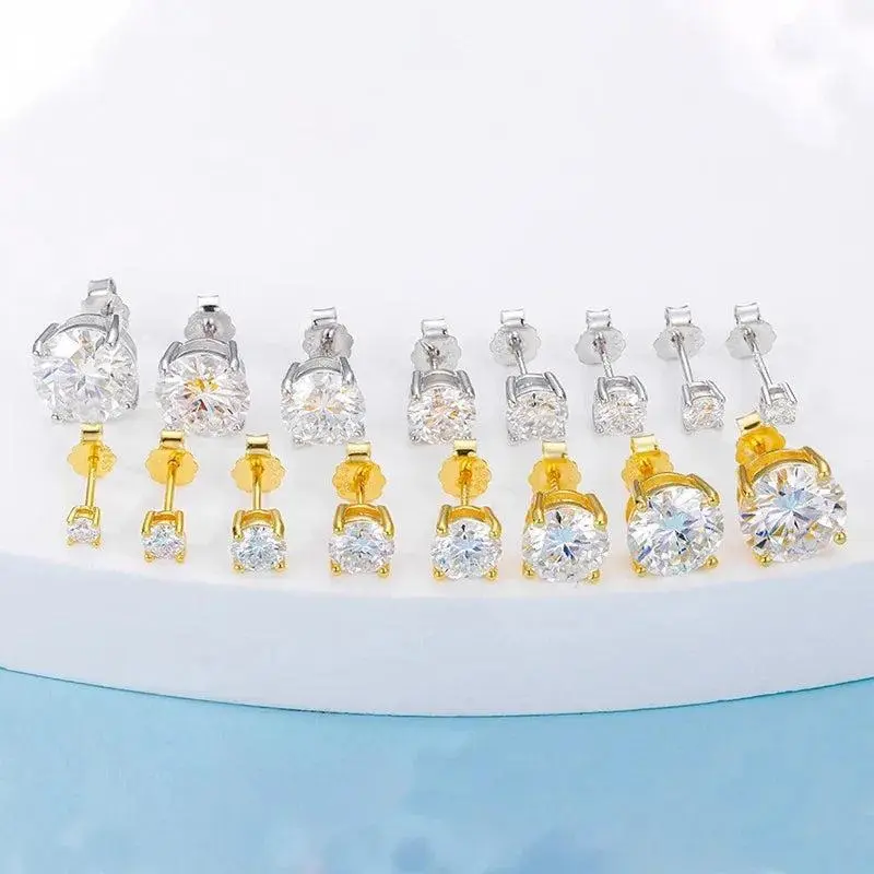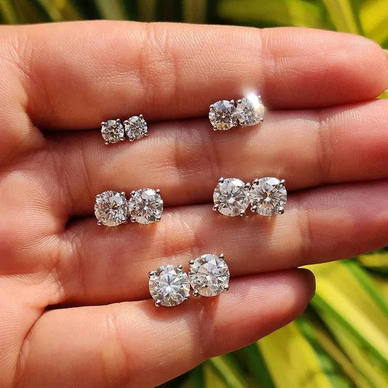 Moissanite Diamond Stud Earrings S925 Silver Platinum Plated Fine Jewelry