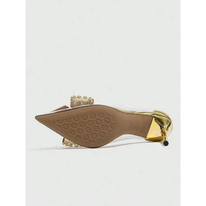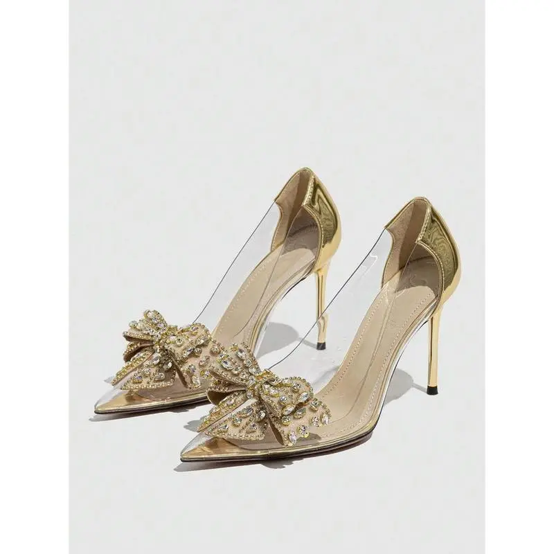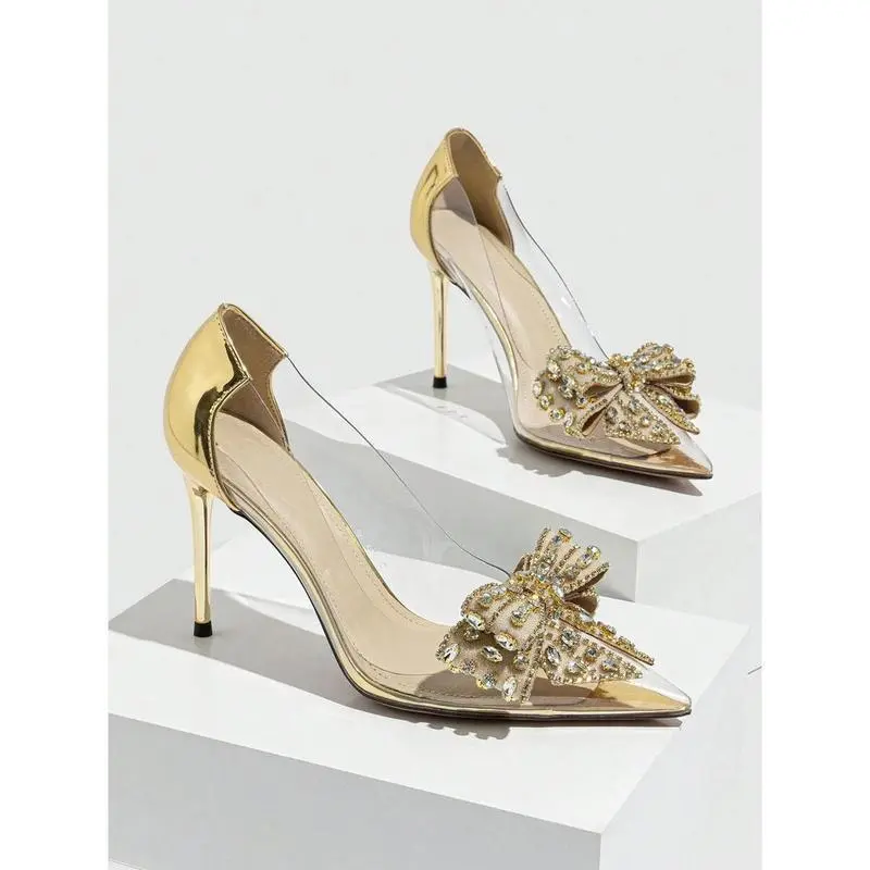Occasion:Wedding, Party, Outdoor Heels:Stiletto Style:, Fashionable, Gorgeous Festivals:Christmas,, Thanksgiving Day, Valentine's Day, Teachers' Day, Easter, Mother's Day, Ramadan, New Year, April Fools' Day, Independence Day, International Workers' Day, al-Adha, St. Patrick's Day, Nurses Day, Women'S Day, Spring Festival Details:Bow, Rhinestone Pattern Type:Plain Color:Gold Type:Court Pumps Toe:Point Toe Size Fit:One Size Bigger Material:TPU Upper Material:TPU qa