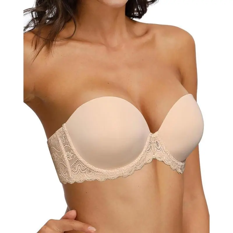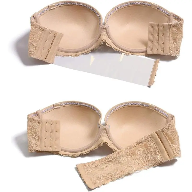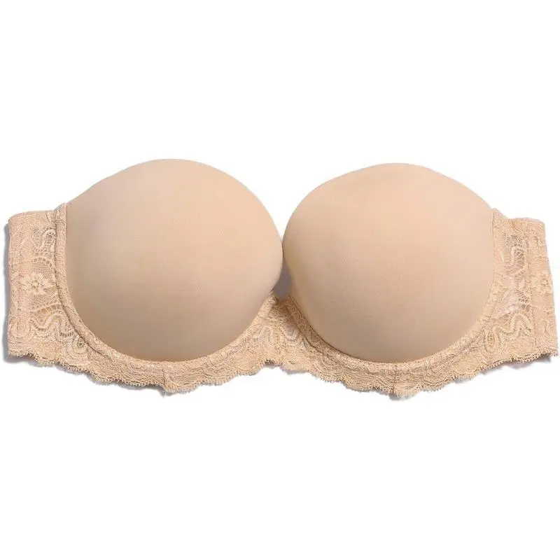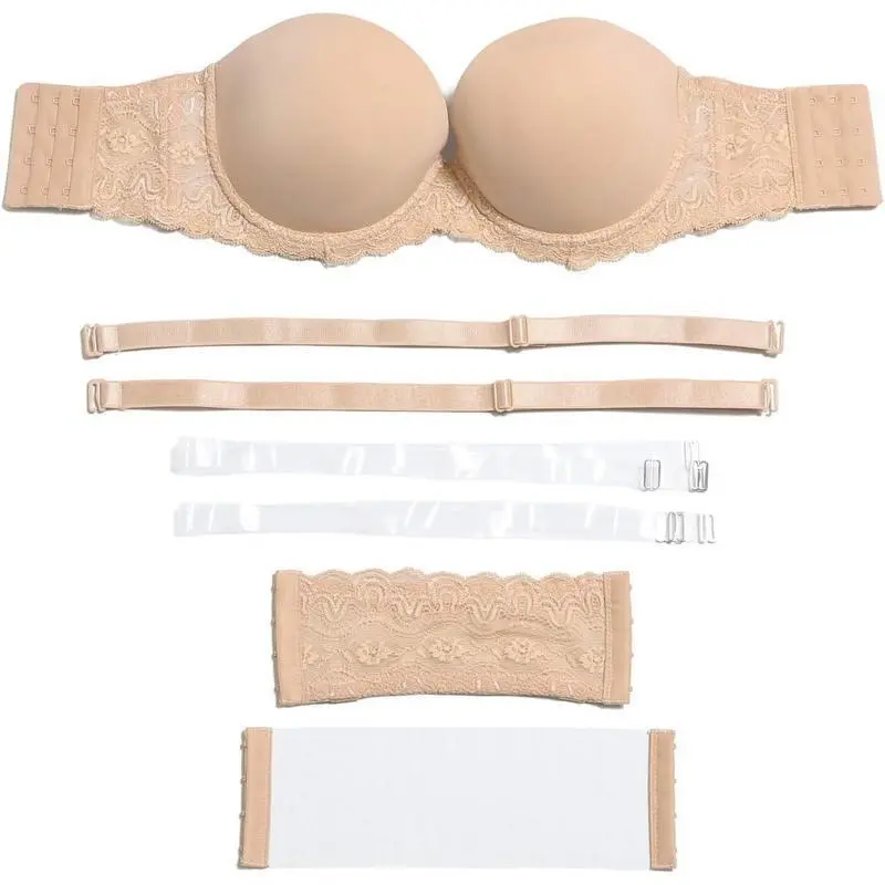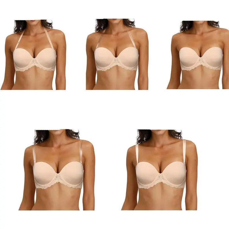Strapless Clear Back Strap Convertible Bra with Lace Padded Underwired Plus Size Brassiere