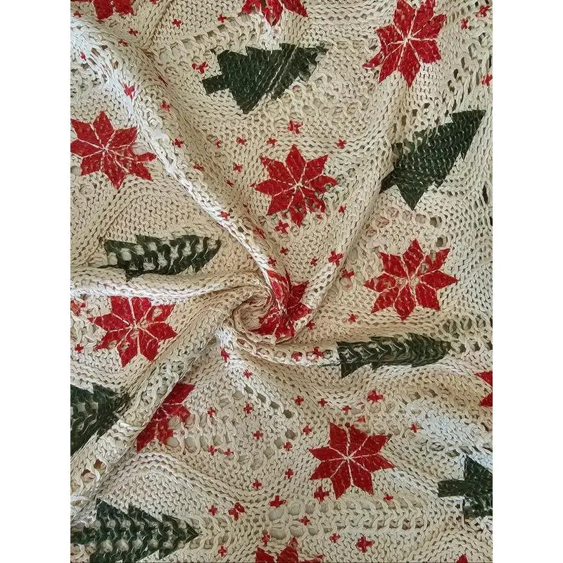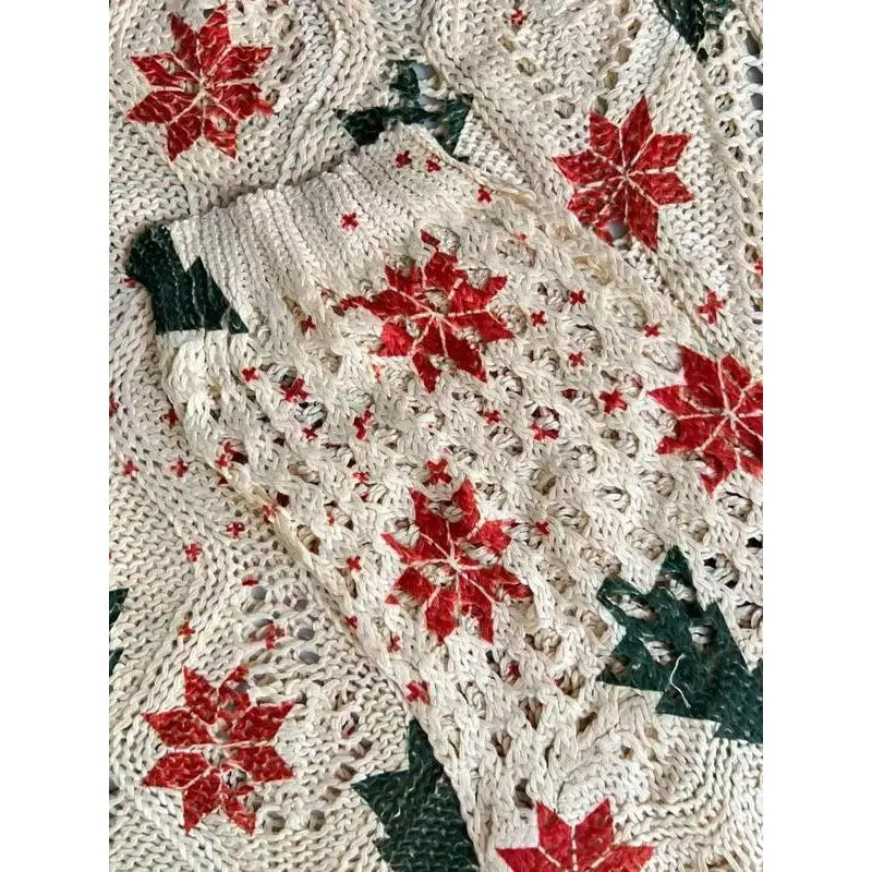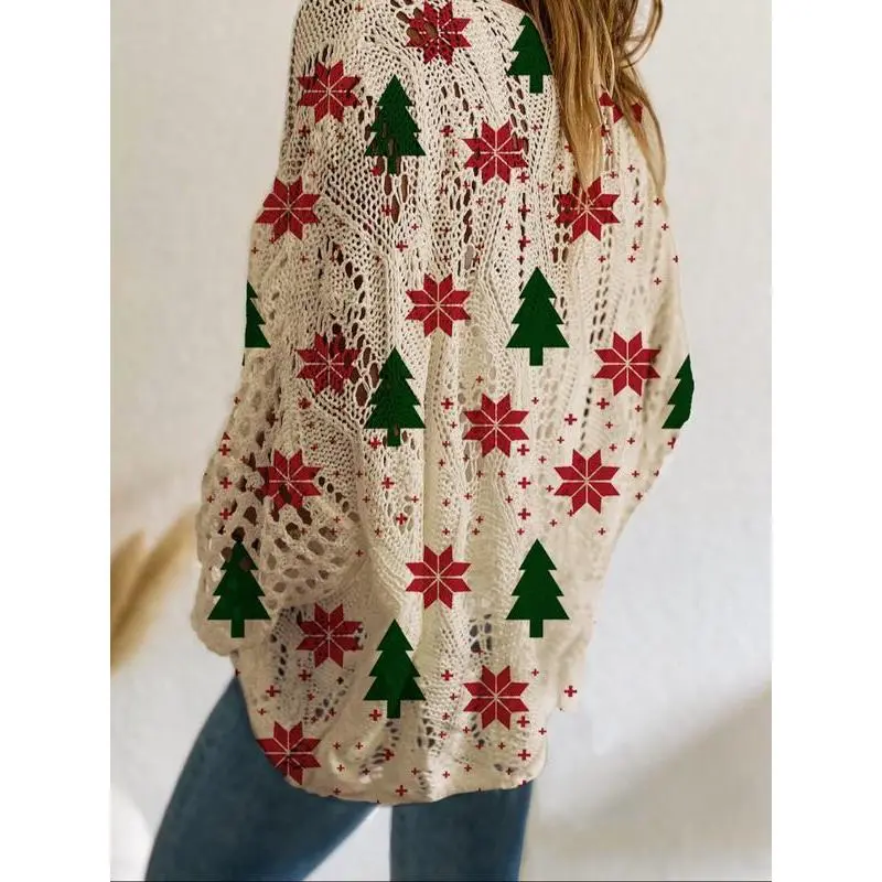 【Unique Christmas Pattern】: Featuring a striking Christmas tree print with snowflakes, this top adds festive flair to your wardrobe. 【Long Sleeve Coverage】: The long sleeves provide additional warmth, making it suitable for autumn and winter wear. 【Oversized Fit】: Designed in an oversized style for a relaxed silhouette, it allows for ease of movement throughout the day. 【Knit Fabric】: Crafted from a thin knit fabric, this top is lightweight yet provides sufficient coverage for transitional weather. 【Versatile Wear】: This piece can be dressed up or down, suitable for travel or casual outings, and pairs well with swimwear.