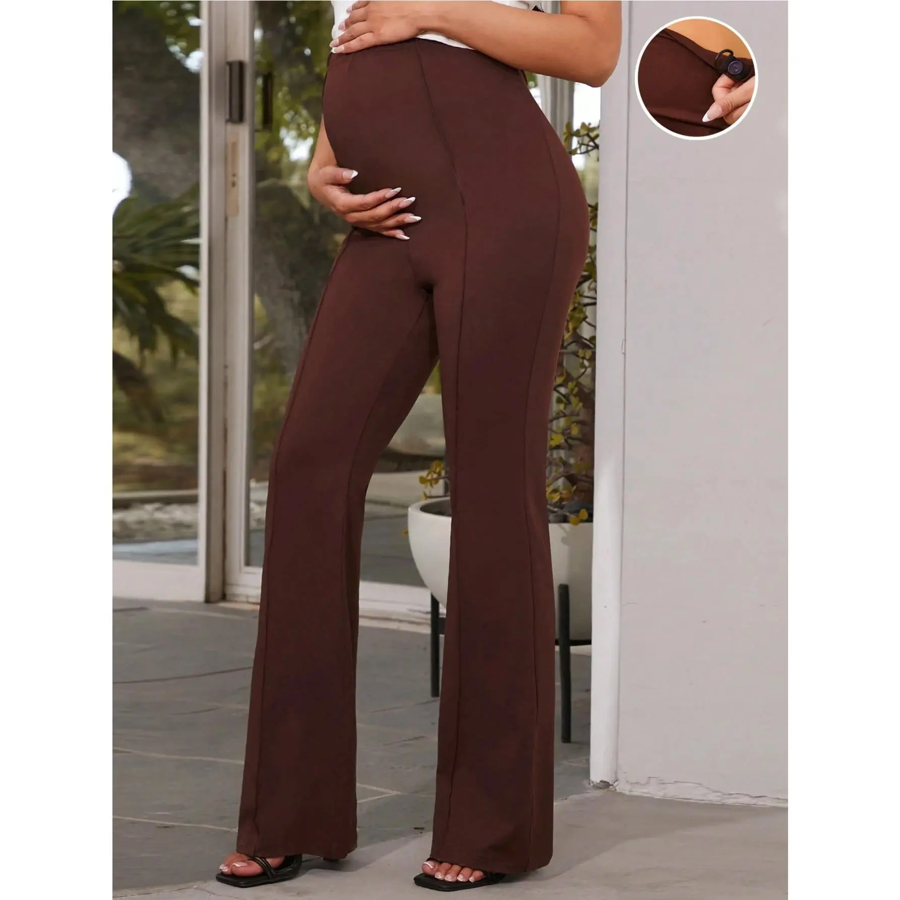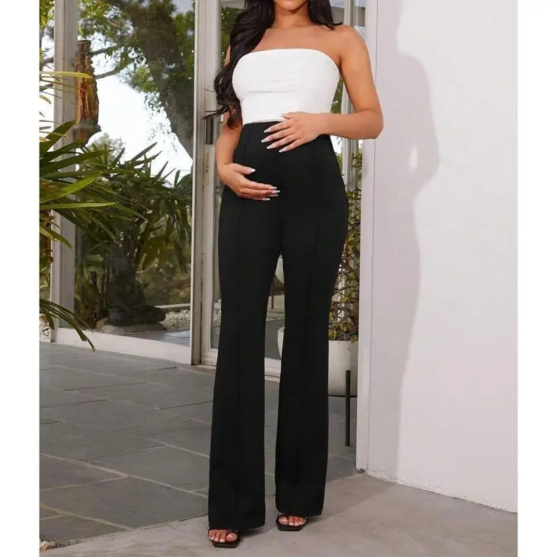 Solid Color Maternity Flare Pants With Adjustable Waist Can be used with a raincoat