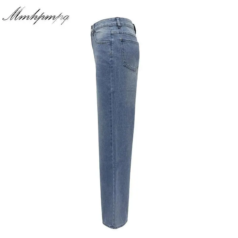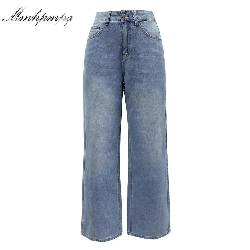 Women's high waisted denim jeans, wide leg loose jeans, washed denim jeans with pockets, denim original