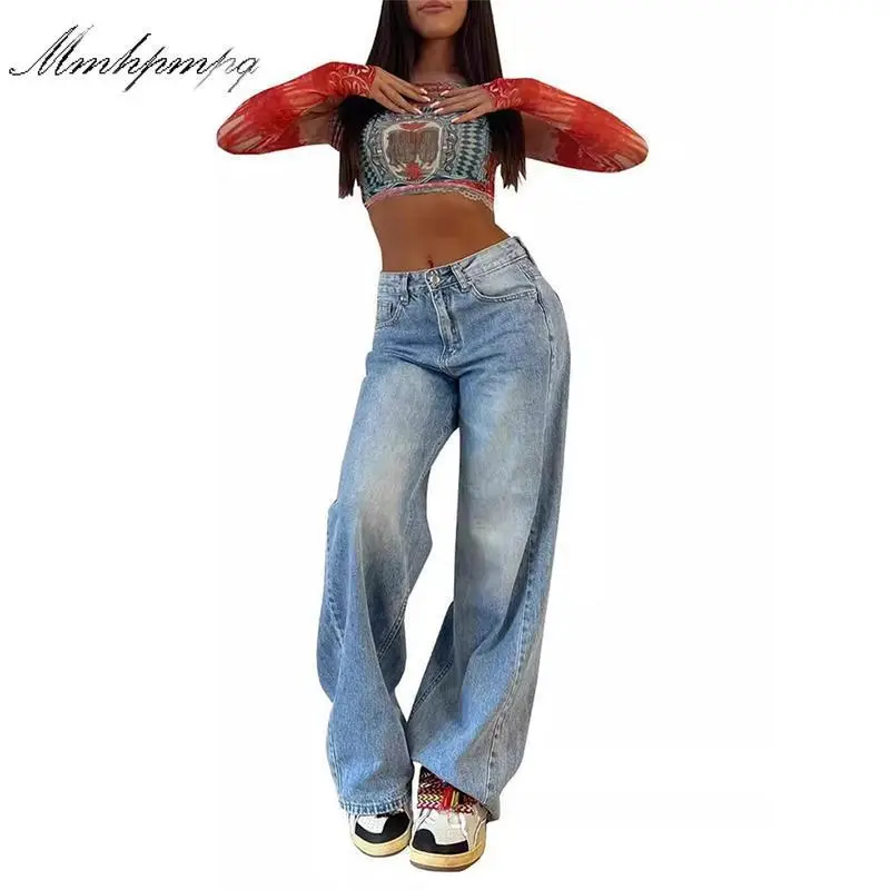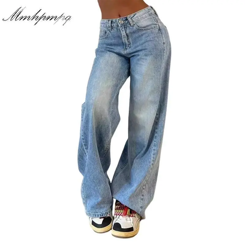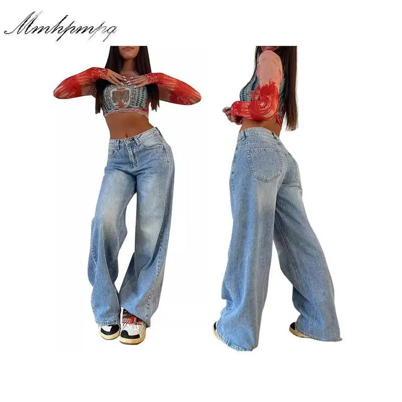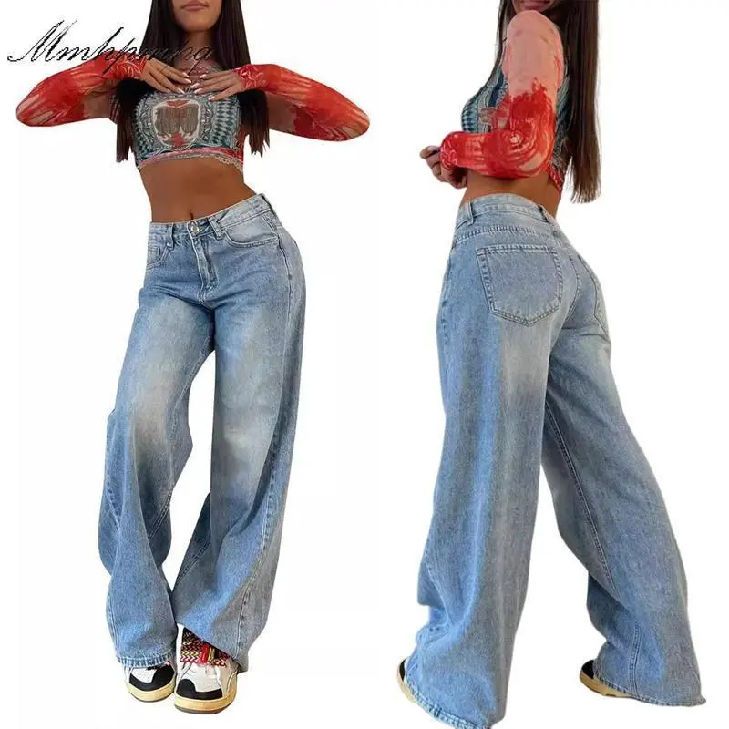 EMMIOL Low Rise Baggy Jeans for Women 90s Y2K Vintage Wide Leg Denim Pants Streetwear Boyfriend Style