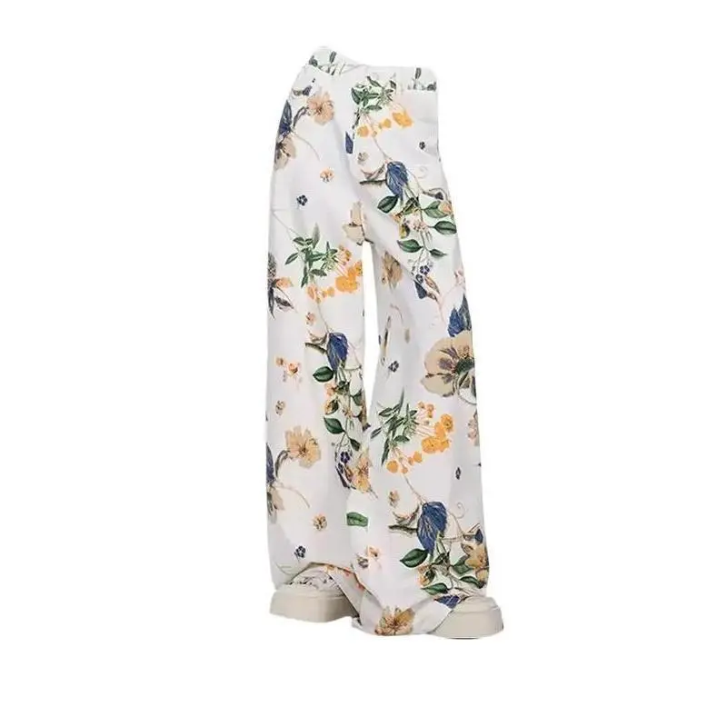 Floral Print Wide-leg Jeans - Retro Y2K High-waist Pants - Trendy Clothing for Women Fashion Womenswear Bottom Everyday Can be used with a raincoat