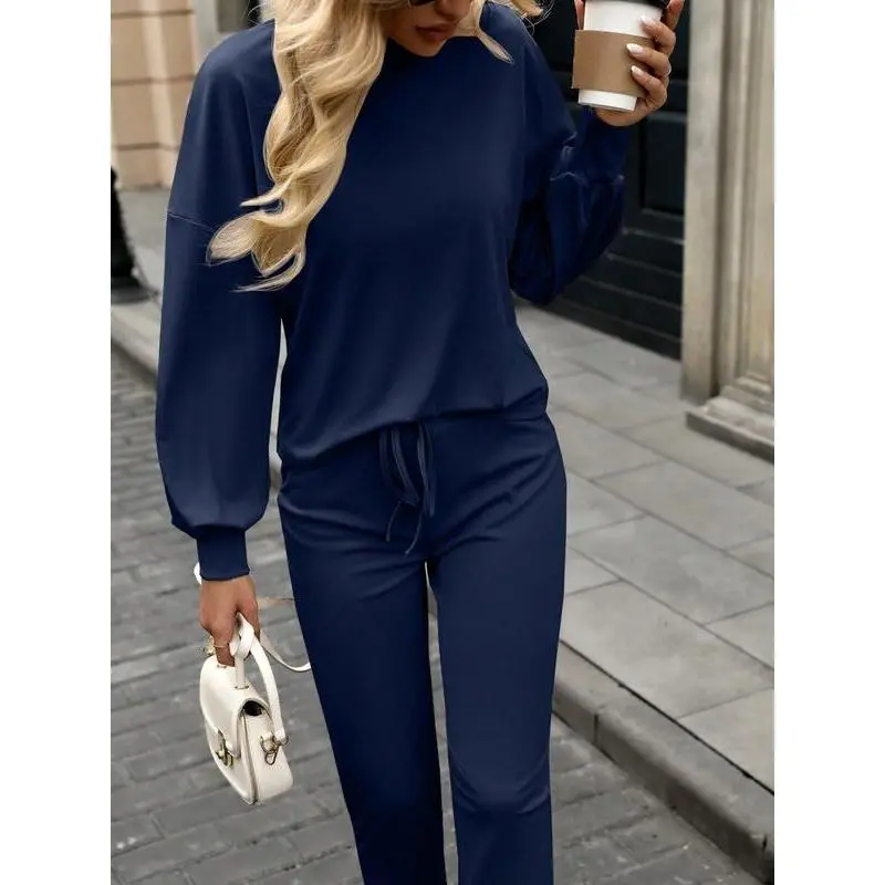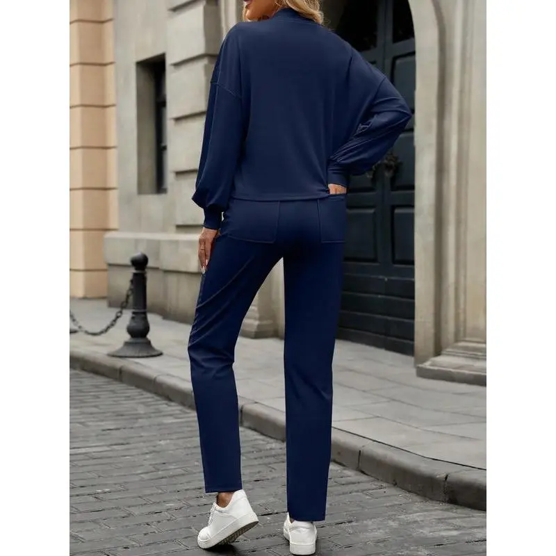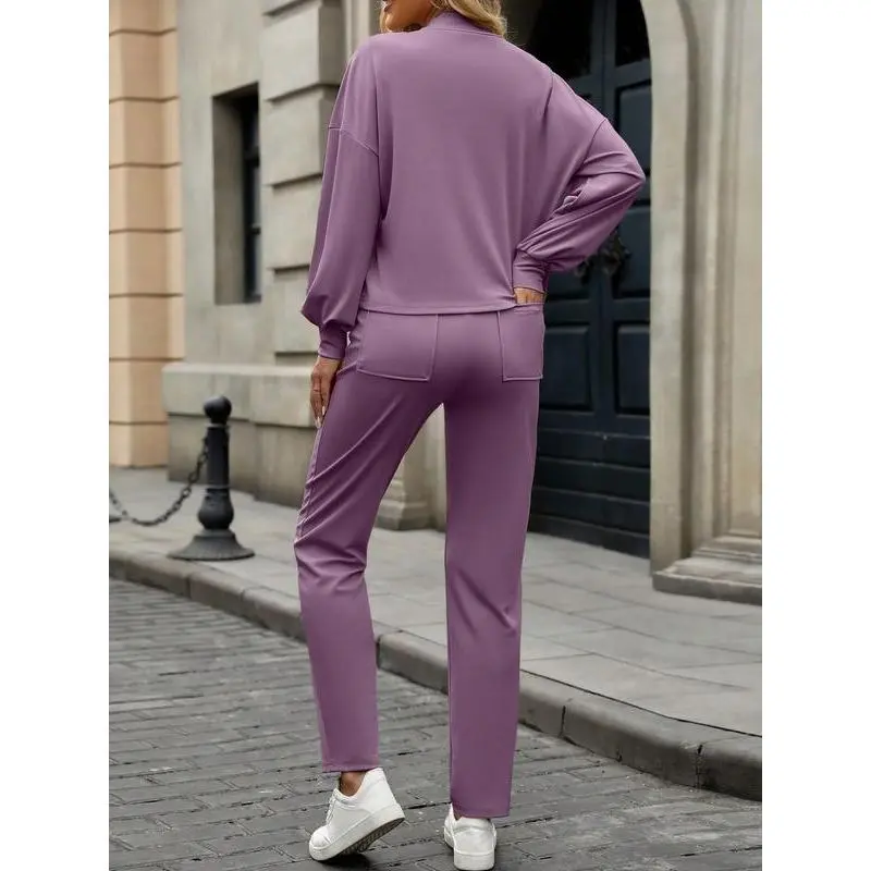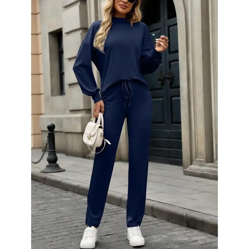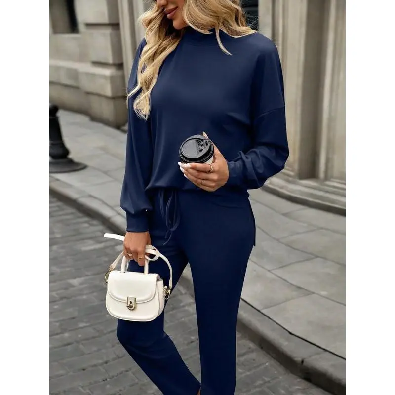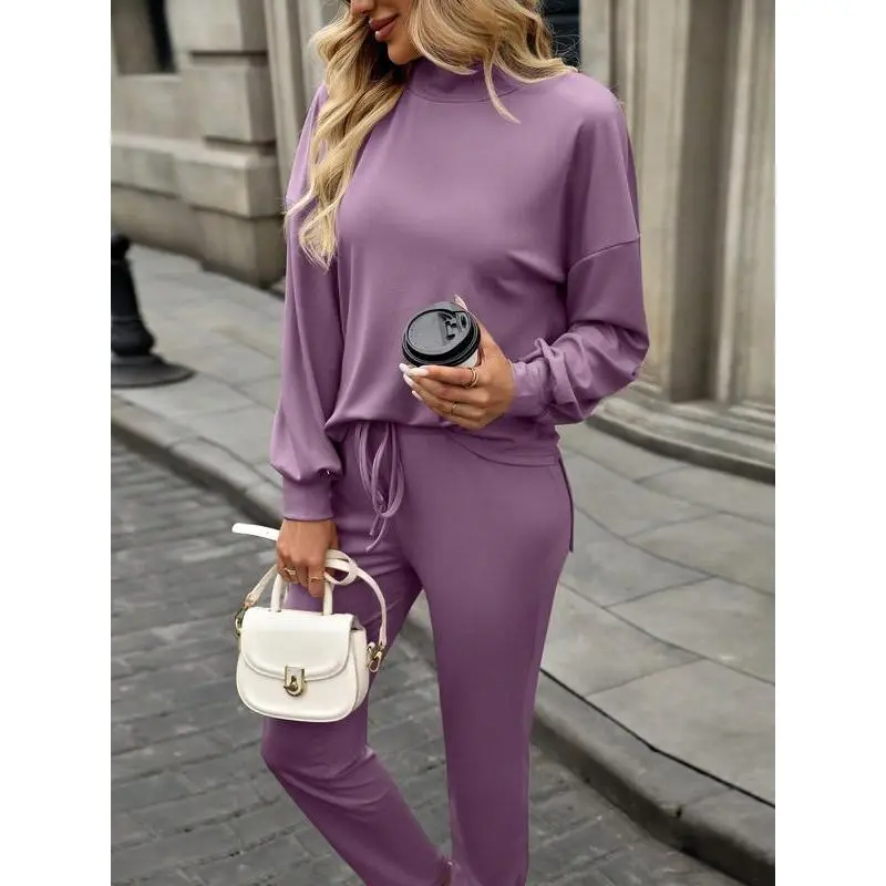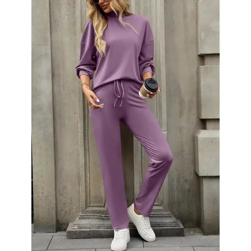 Two-piece women's overall version loose and comfortable turtleneck sweatshirt + same color wide-leg trousers turtleneck sweatshirt set, suitable for autumn and winter, suitable for casual commuter style, home comfort