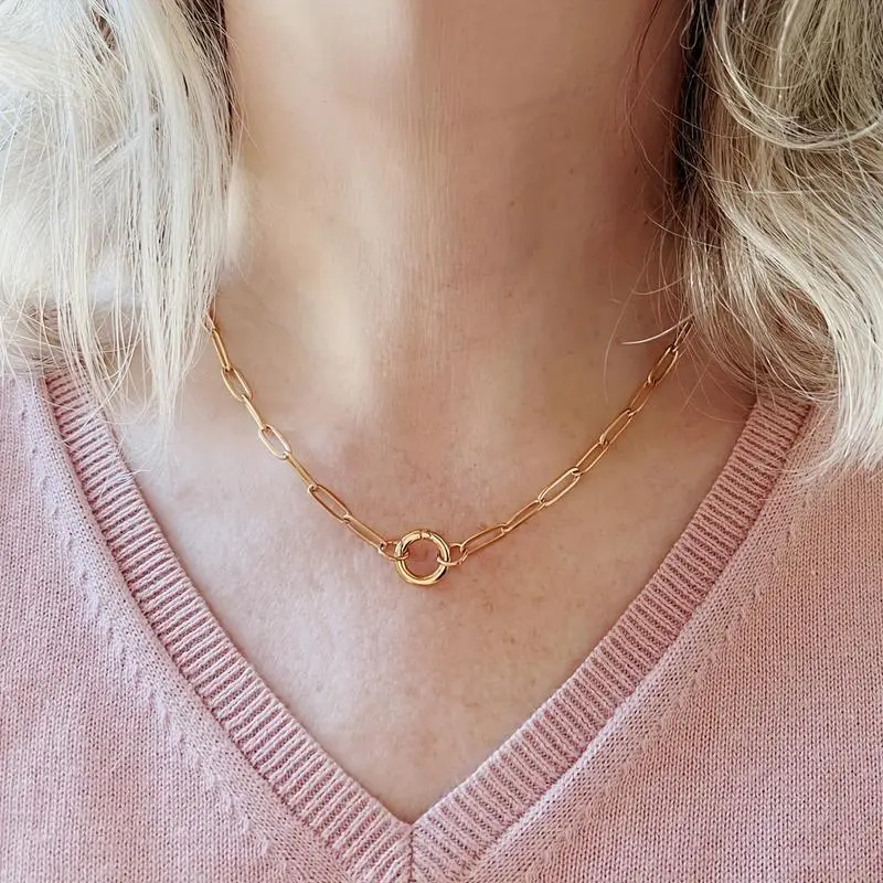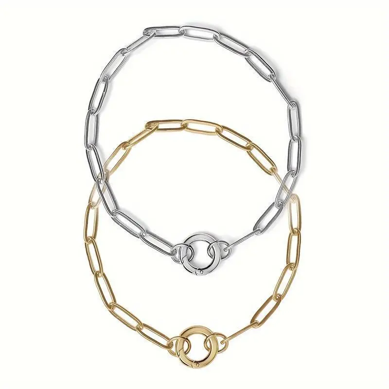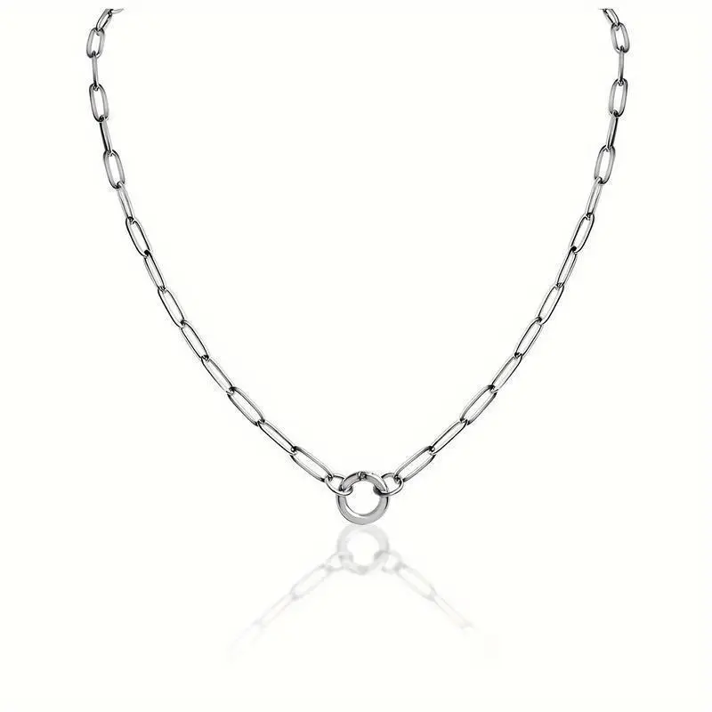 Stainless Steel Paperclip Chain with Circle Charm Holder Necklace, Extender, Lobster Clasp, Waterproof, Silvery, Bracelet for Women