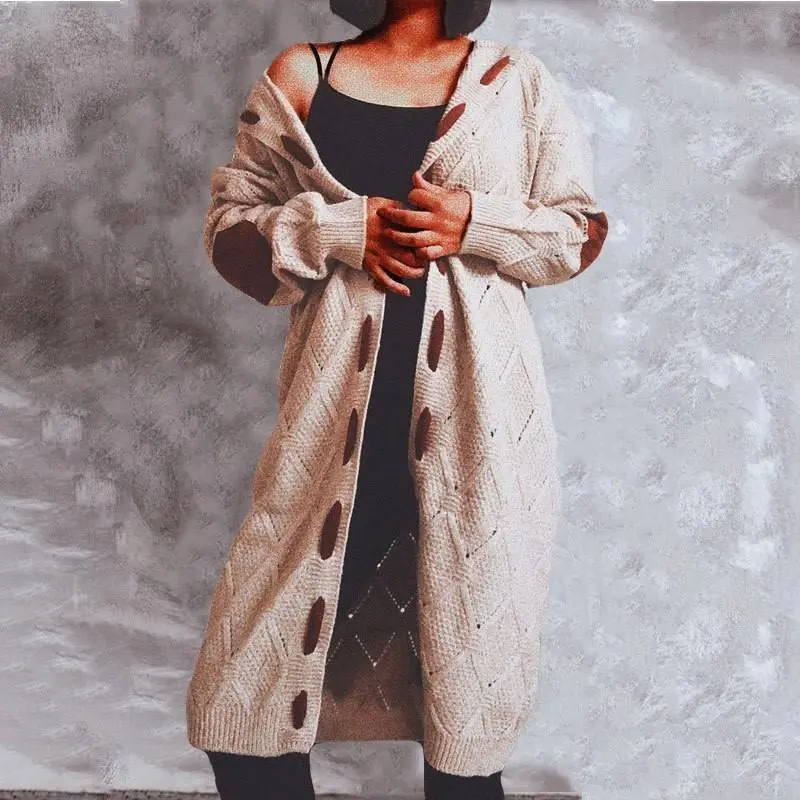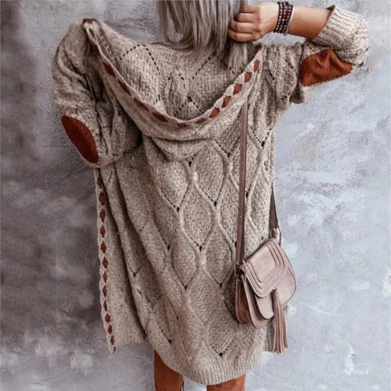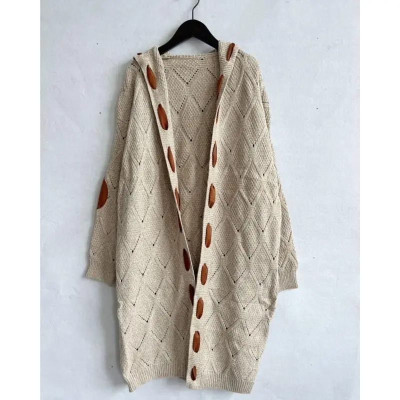 Vintage Casual Hooded Long Cardigan 2025 Autumn/Winter Knitted Sweater Brown Coat Oversized Jacket Streetwear Spliced Lace-up