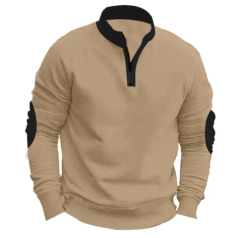 Loose And Fashionable Casual Plus Velvet Heavy Stand Collar Pullover Half Zipper Long-sleeved Sweatshirt Versatile Color-blocking Top For Men In Autumn And Winter
