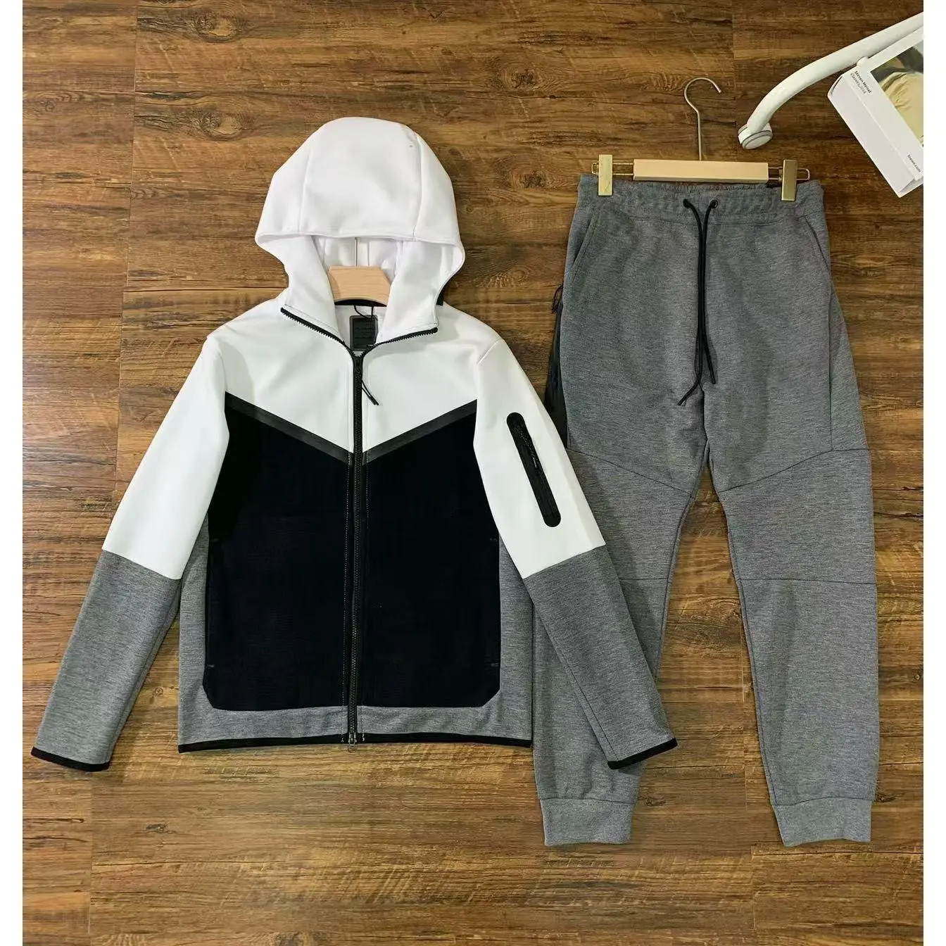 Khaki Splicing White Set