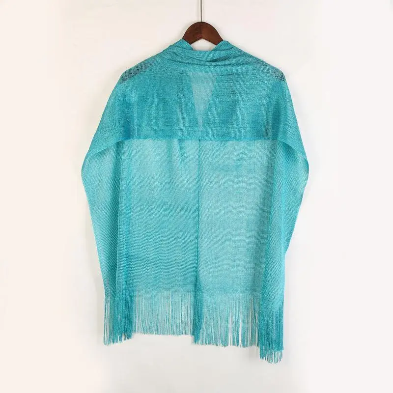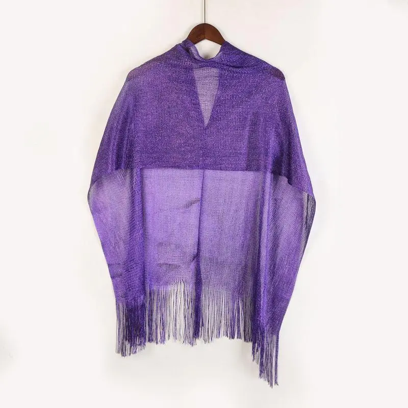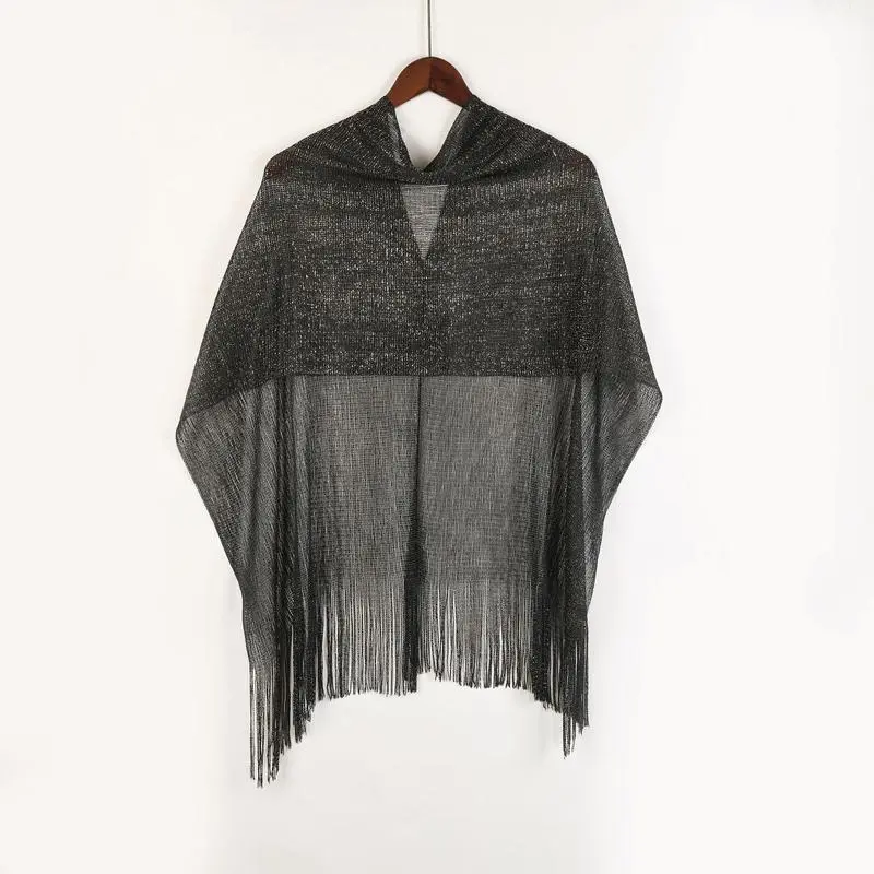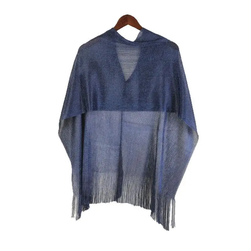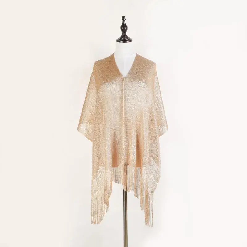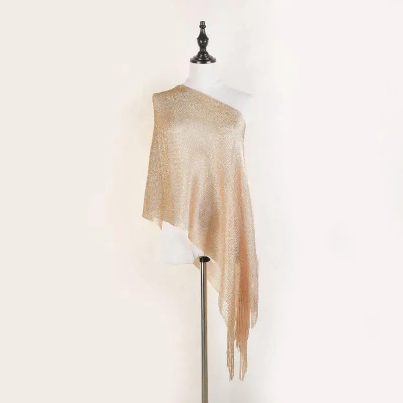 Solid color plain weave shawl beach outfit pullover, gold and silver asymmetrical knitted cape
