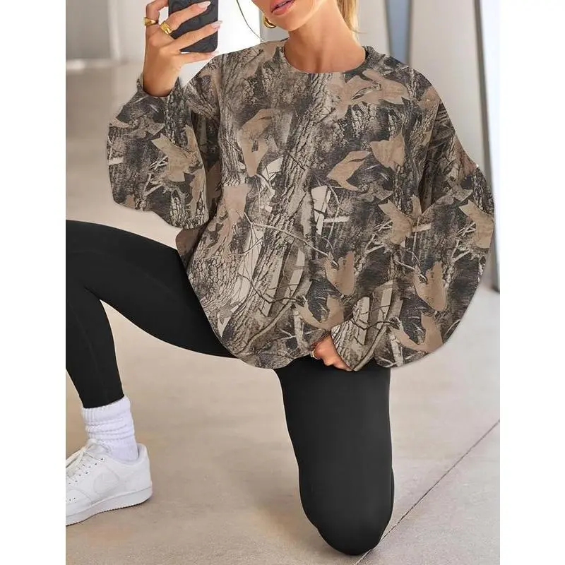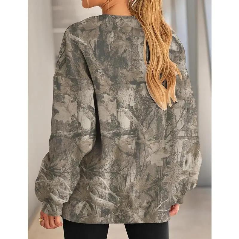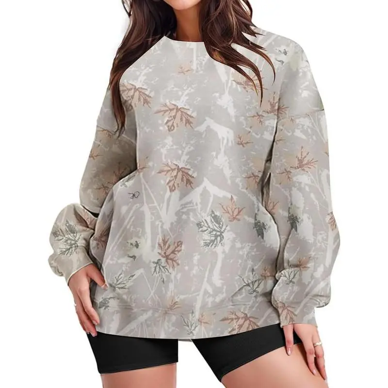 This women’s camouflage sweatshirt features a maple leaf print, soft fleece lining, ribbed cuffs and hem, drop-shoulder design, and a classic crew neck for a relaxed, laid-back streetwear look. The loose-fit silhouette flatters different body types and provides maximum comfort and freedom of movement. Match: