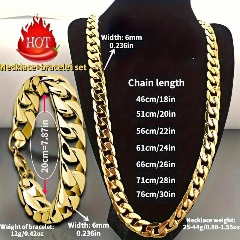 🎀 Elegant 2pcs/set Jewelry Set 🎀 This set includes a necklace and a bracelet, perfect for both men and women. The necklace lengths range from 18" to 30 inches, offering versatile styling options. The bracelet measures 21CM, complementing the necklace seamlessly. Ideal for fashion enthusiasts, this set combines elegance with practicality. 🌟 Available Necklace Lengths 🌟 Choose your preferred length for a perfect match. This set is a must-have for any jewelry collection.