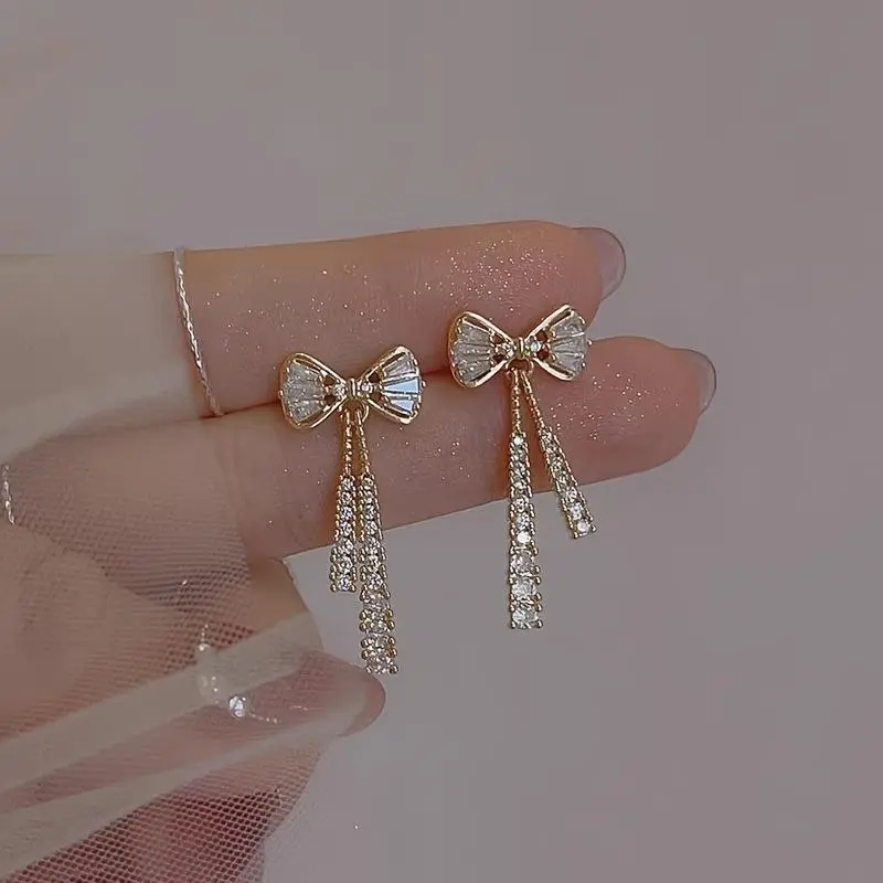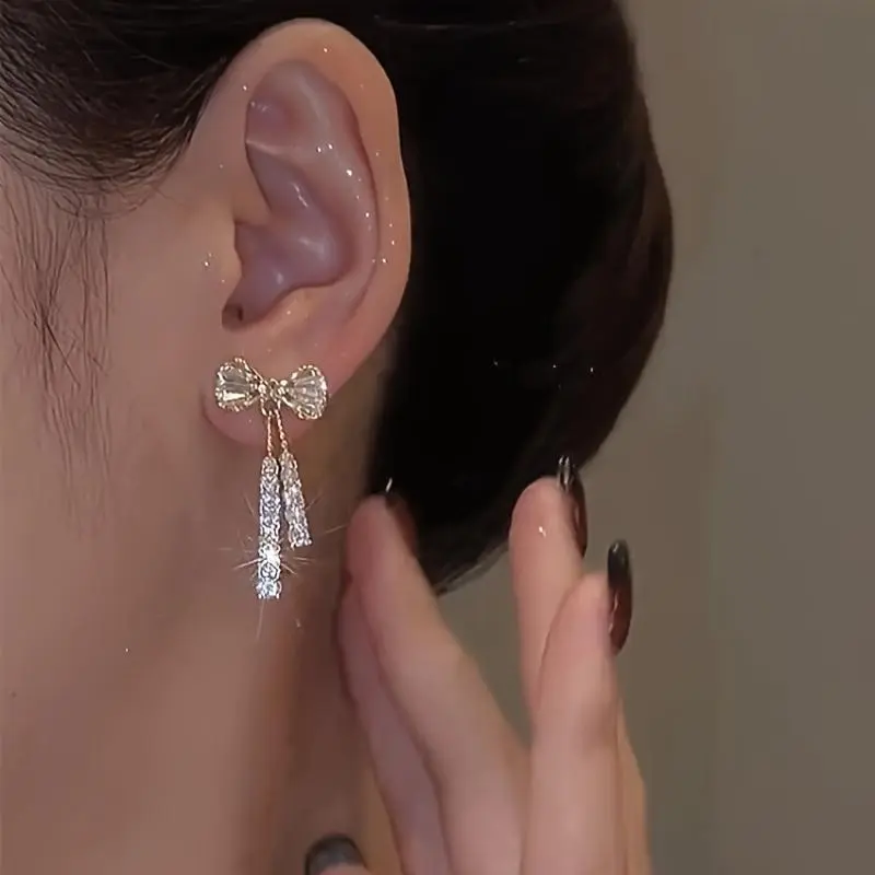 Elegant Bow Zirconia Earrings ✨ Elegant Bow Zirconia Earrings for Women ✨ These sparkling everyday wear jewelry earrings feature an exquisite design. Perfect for special occasions, these novel earrings make a thoughtful gift. The set includes 2 pieces, ensuring you have a pair for any occasion. The image showcases the elegant bow zirconia earrings, highlighting their sparkling appearance and exquisite design. 🌟 These earrings are a versatile addition to any jewelry collection. They are perfect for those looking for a sparkling, elegant accessory for everyday wear or special occasions.