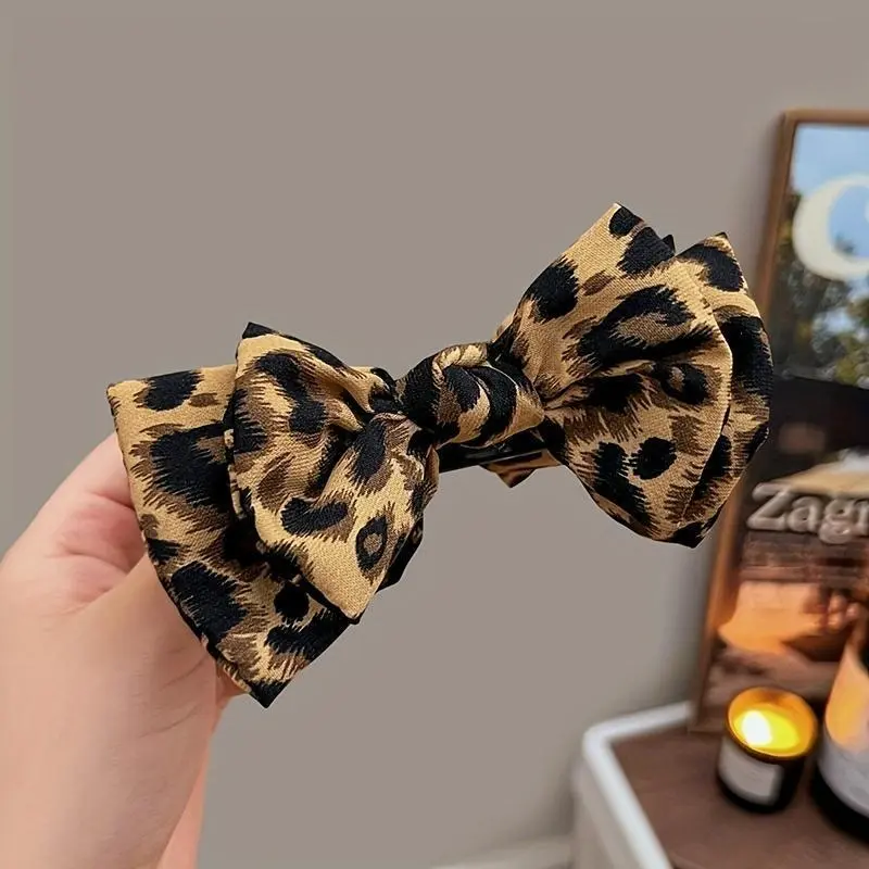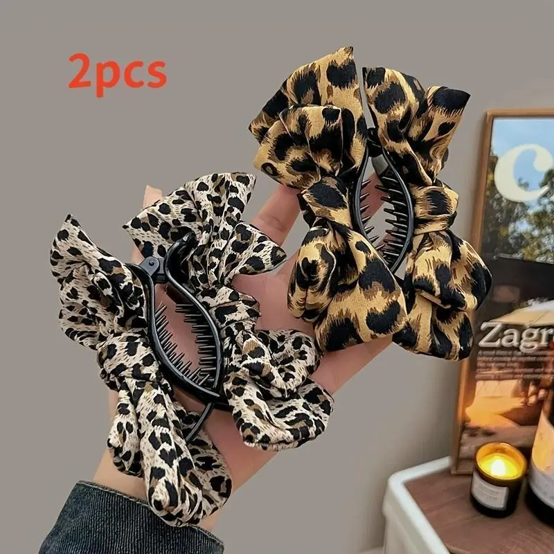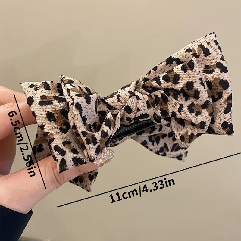 2 One Leopard Print Pattern Barrettes Suit, Suitable for Women, Retro and Fashionable Fabric Leopard accessory , Suitable for Ponytail and Various Hairstyles, Perfect for Party and Daily Wear, Elegant Bowknot Hair Claw flower hair clip decorative