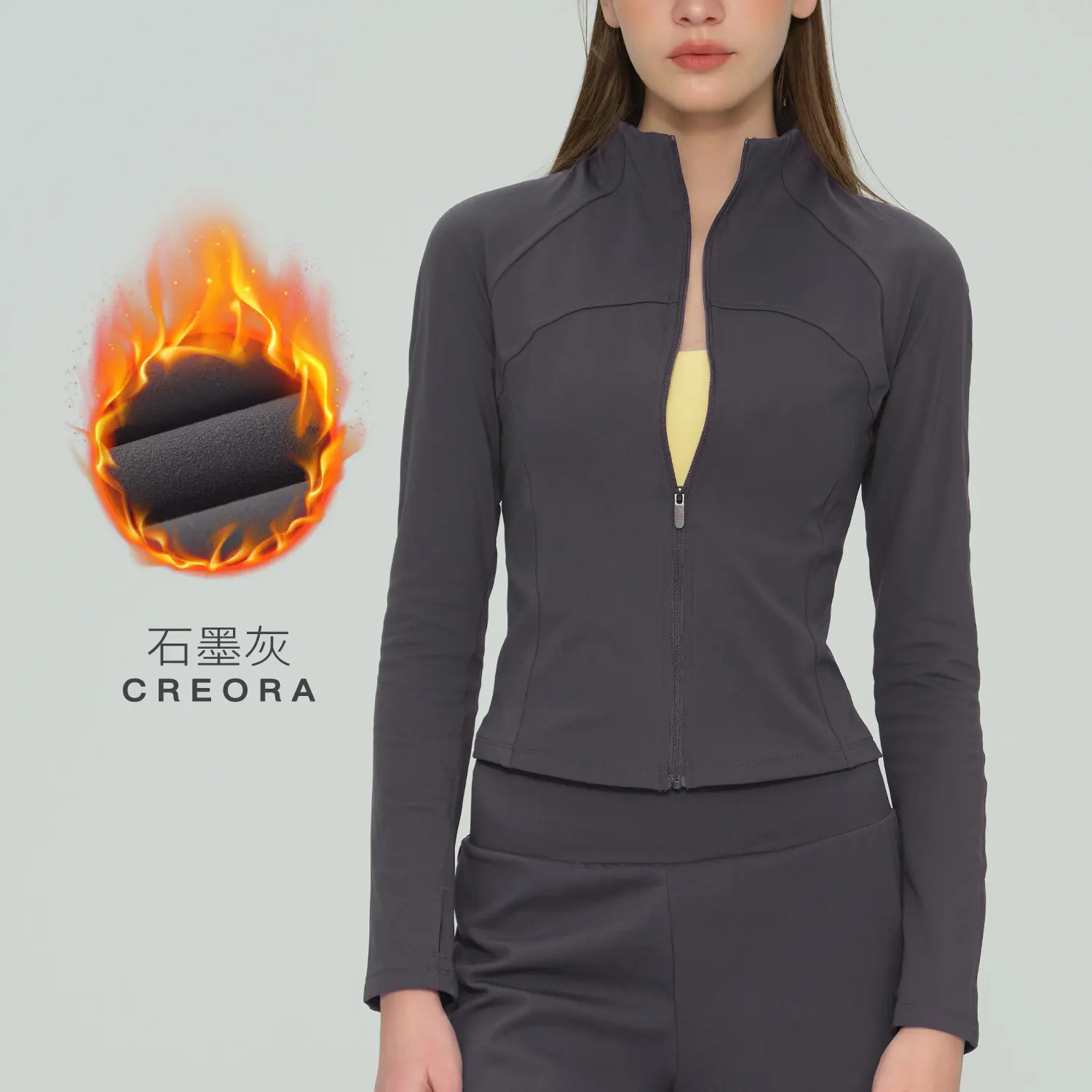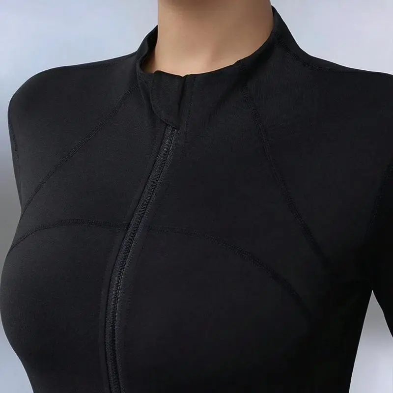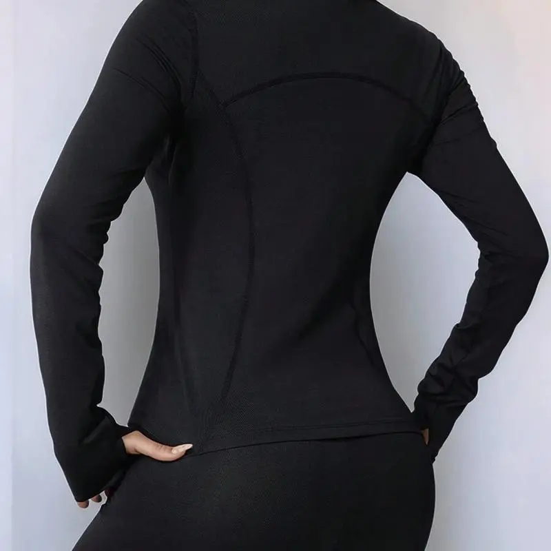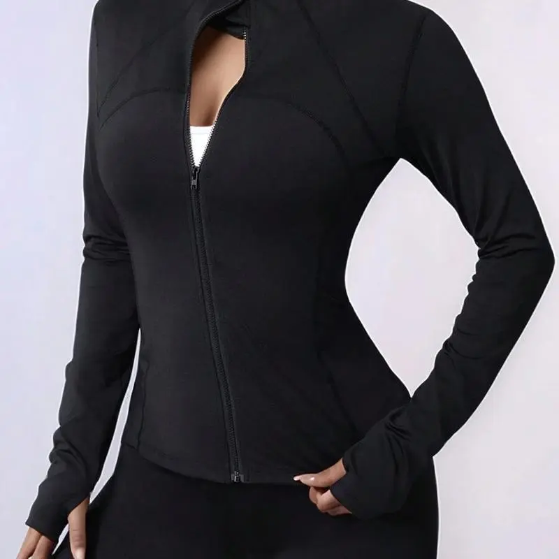 Zipper Long Sleeve Sports Jacket for Plus Size Women, Slim Fit, Thumb Hole Cuffs, Gym Yoga Running Outerwear season lady
