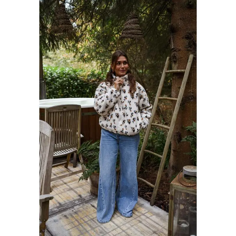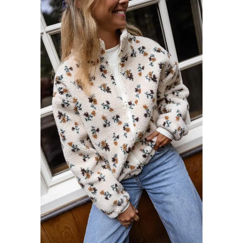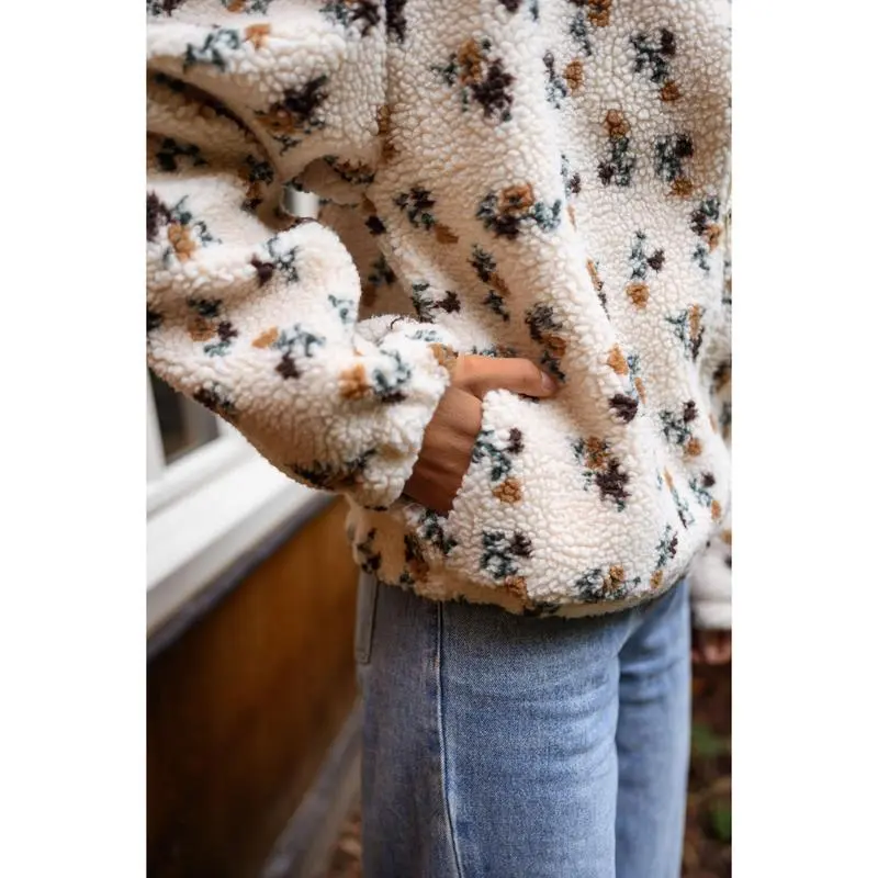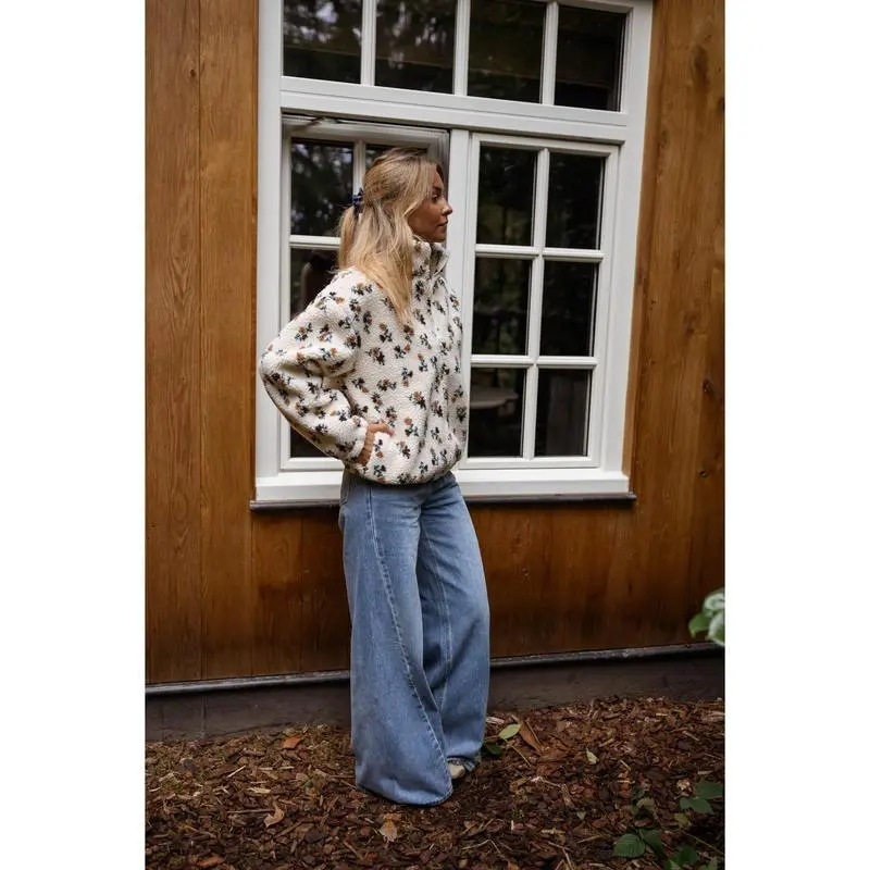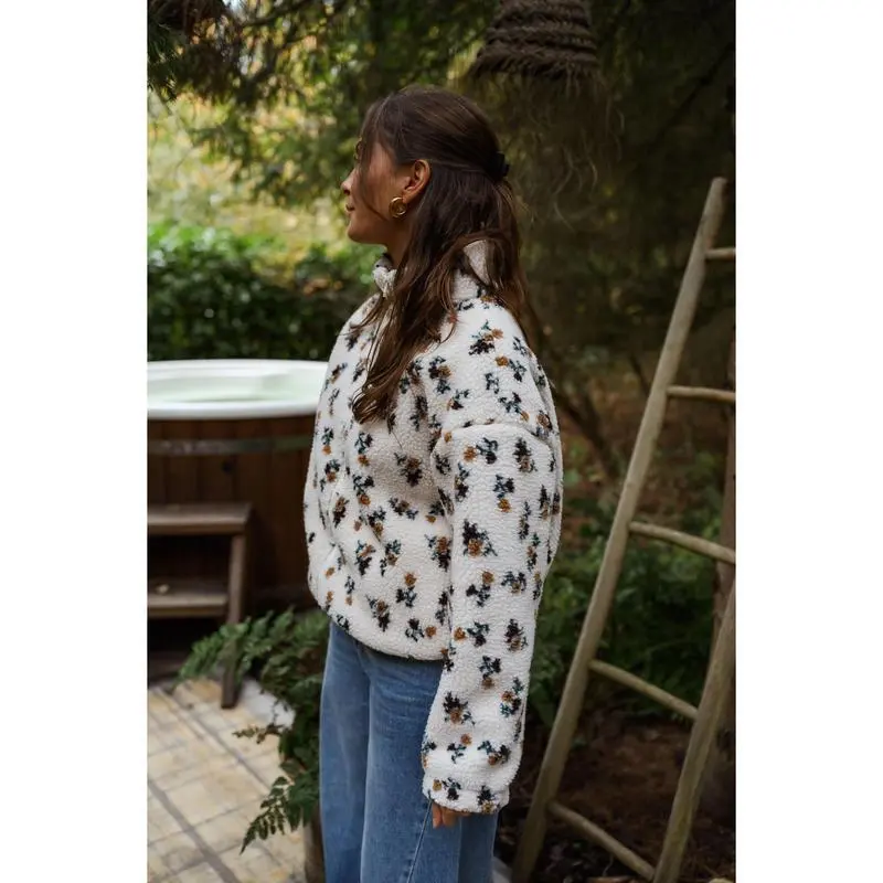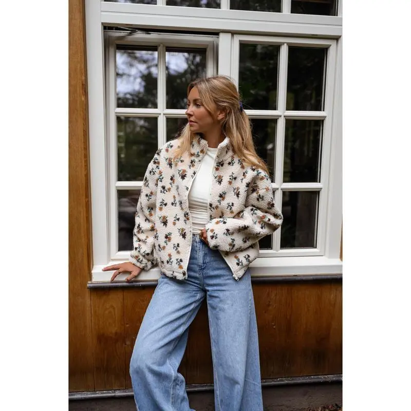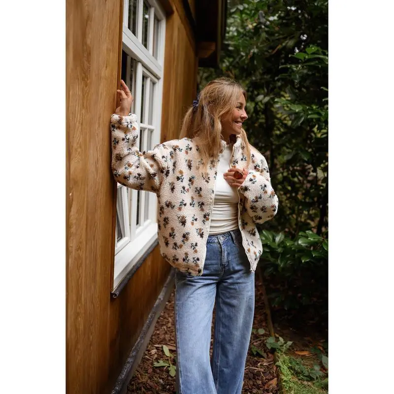 Bring warmth and style together with the Ecru Floral Alice Fleece Jacket. Crafted from soft fleece, it features long sleeves, vibrant floral patterns, a zip closure, side pockets, and a tightened hem for a cozy, flattering fit—perfect for cooler days.