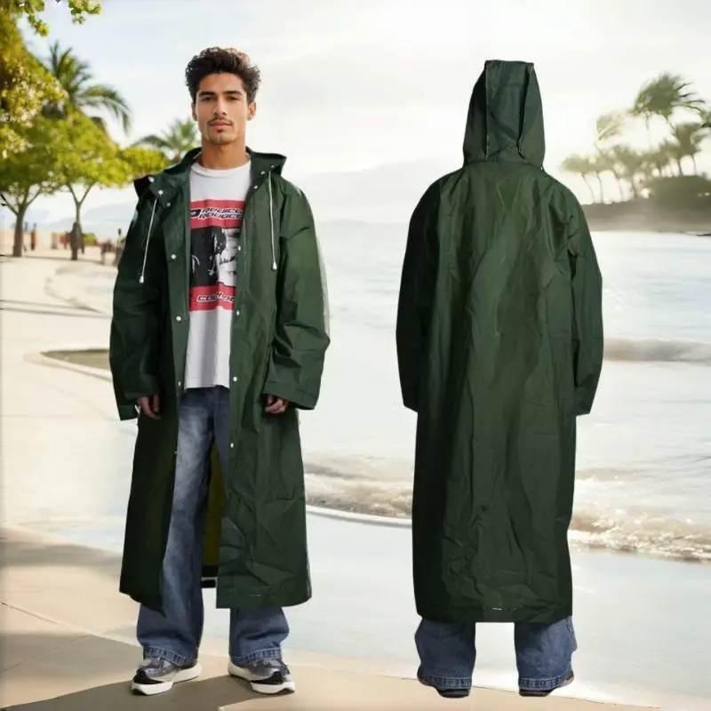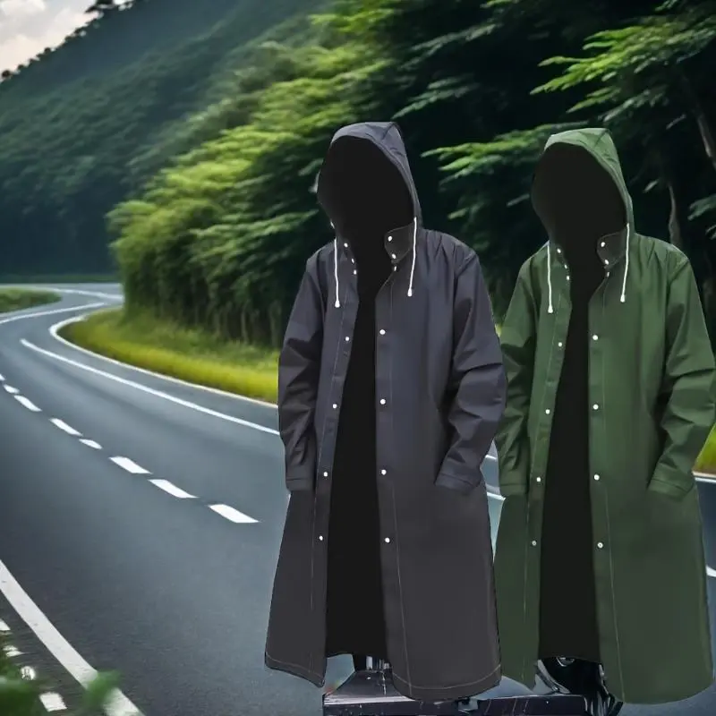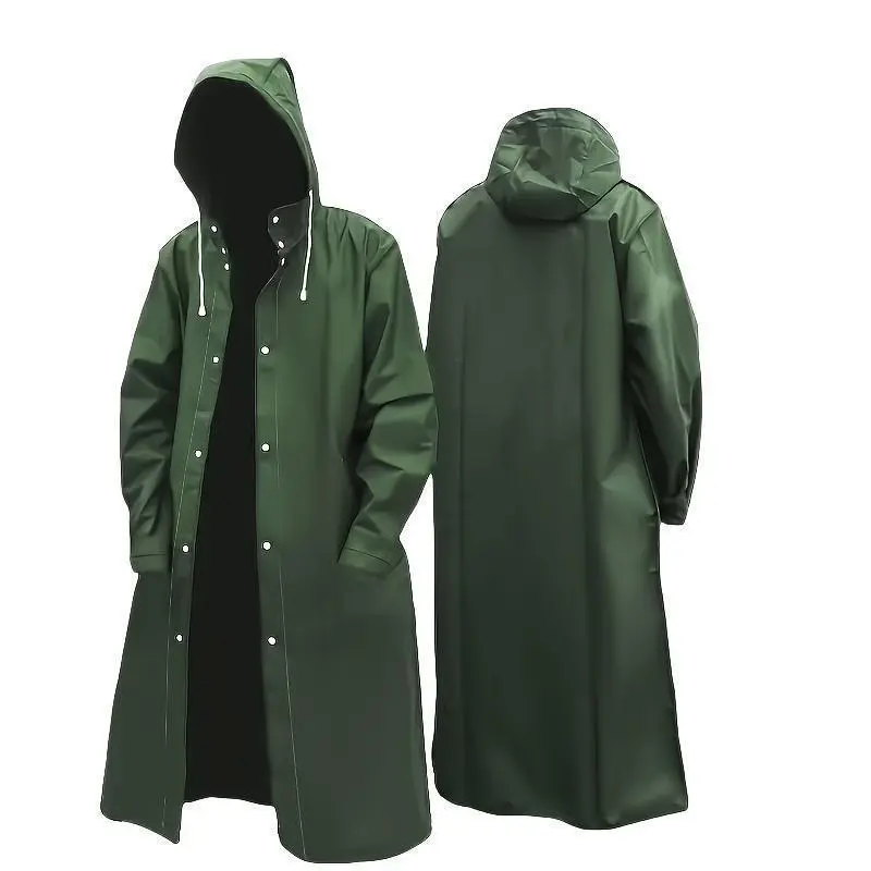 Men's Waterproof Full Body Coverage Rain Coat Poncho - Solid Color Hooded Long Sleeve EVA Cloak for Outdoor Riding, Hiking, Camping, and Travel
