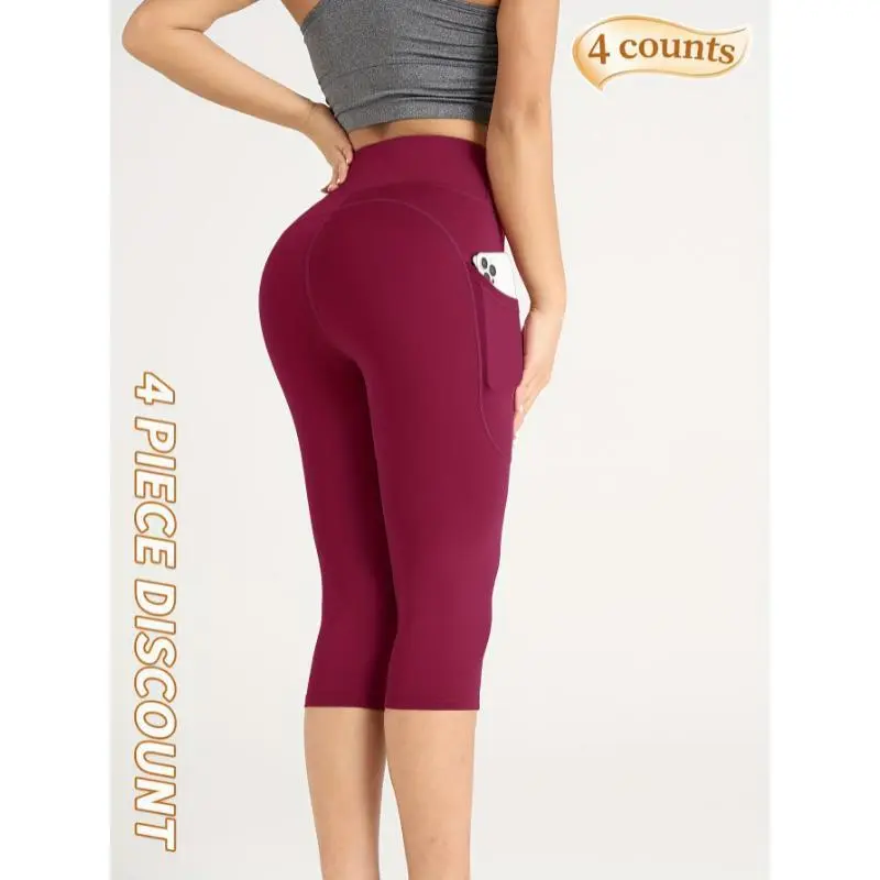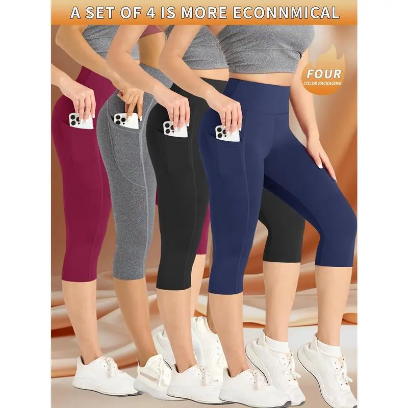 4-PackHighWaistedYogaCapris,BootySculptingCompressionLeggingsWithSidePhonePocket,FitnessPants