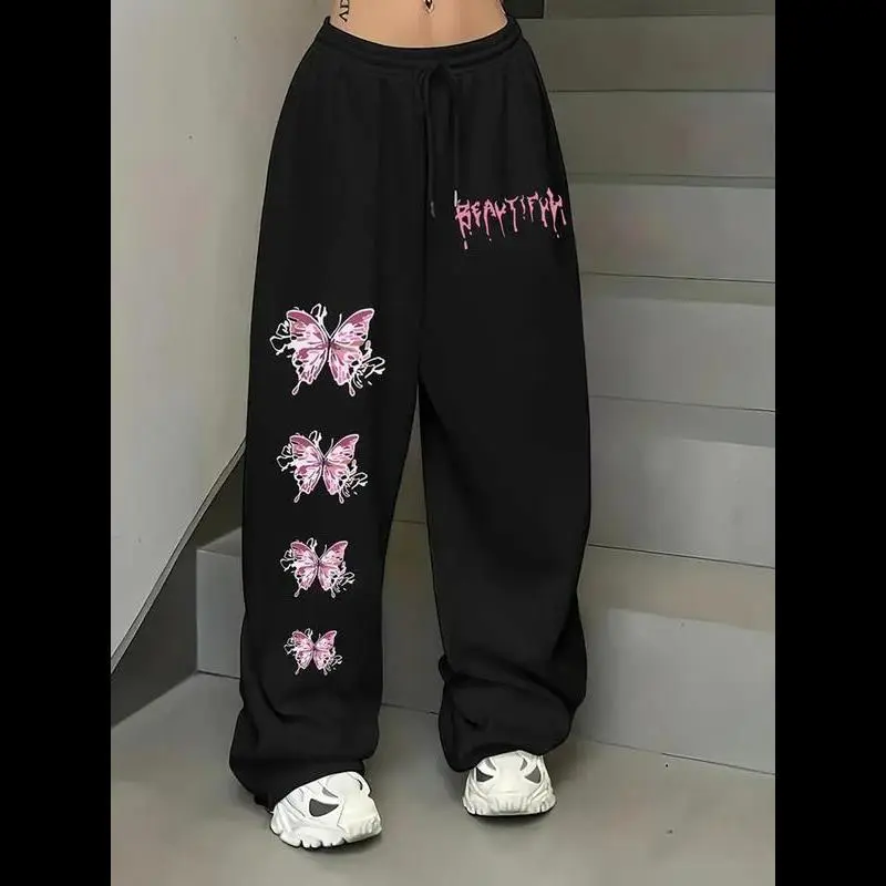 Unisex Butterfly Print Drawstring Waist Sweatpants, Casual Loose Jogger Pants for Daily Wear, Unisex Bottoms for All Seasons, Women
