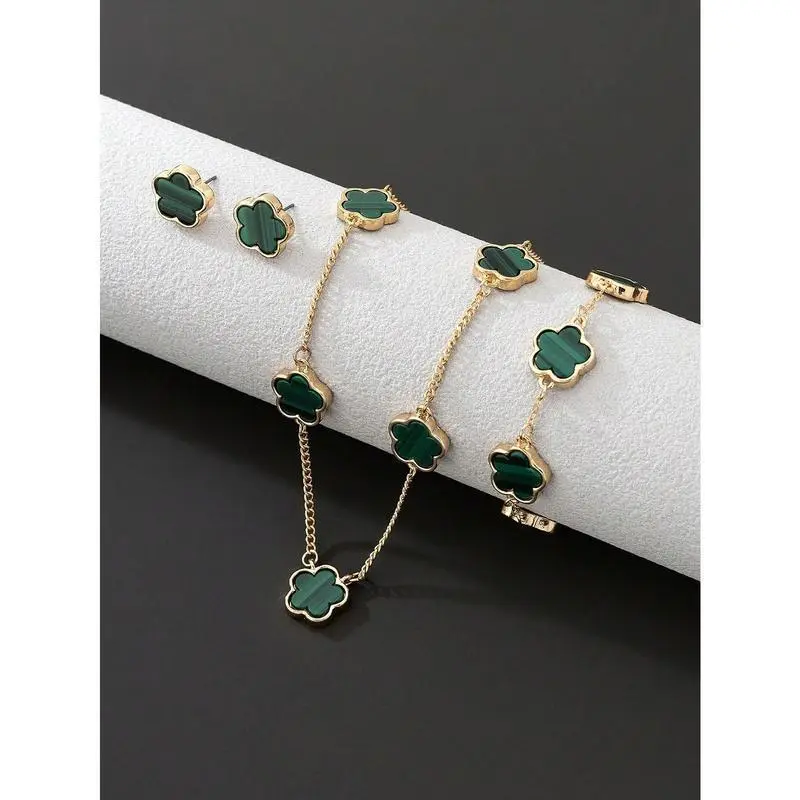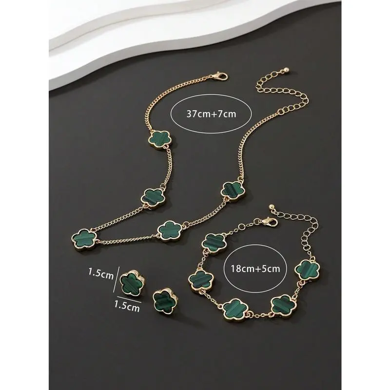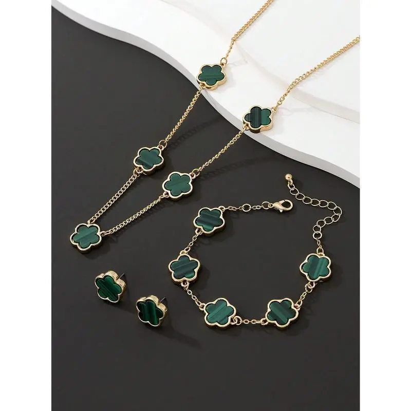 1pc Simple & Classic Lucky Four-Leaf Clover Pendant Necklace, 1pc Bracelet And 1pair Earrings Women's Jewelry Set Valentines,Mom,Mother,Mother's Day,Gift